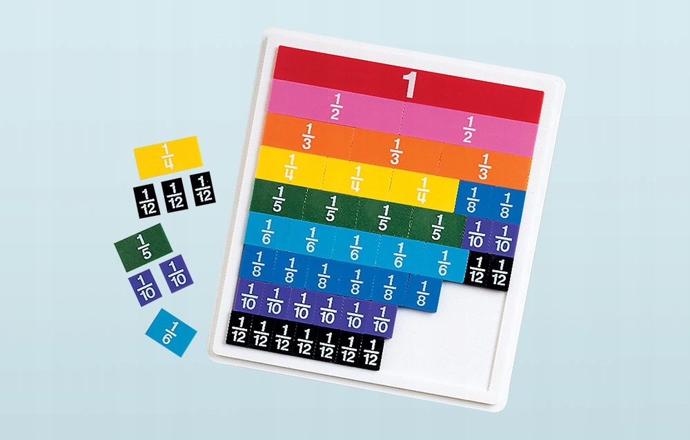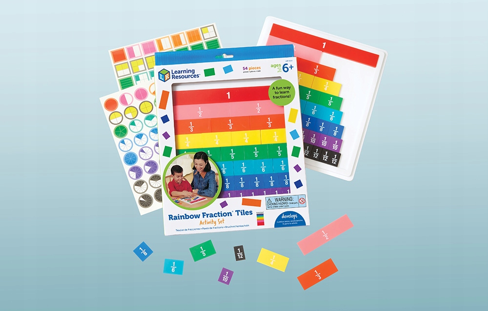 Навчання дітей дробам і числовим операціям може бути проблемою для батьків. Rainbow Fraction® Tiles допомагає дітям легше зрозуміти їх завдяки практичному досвіду роботи з моделями дробів. Крім того, вони дозволяють швидко зрозуміти значення еквівалентних дробів і операцій додавання і віднімання. Набір підходить для дітей від 7 років - ним можуть користуватися кілька людей. Для цього скористайтеся розмальовкою в кінці посібника.