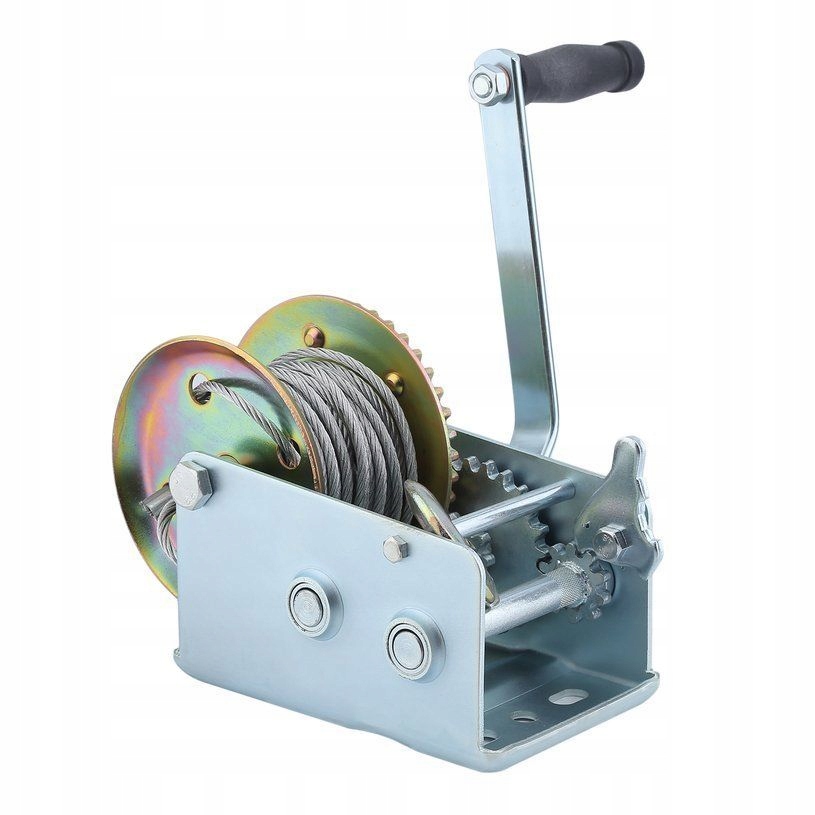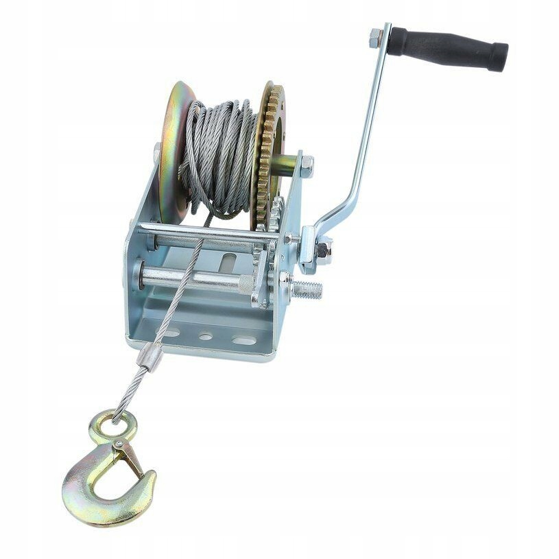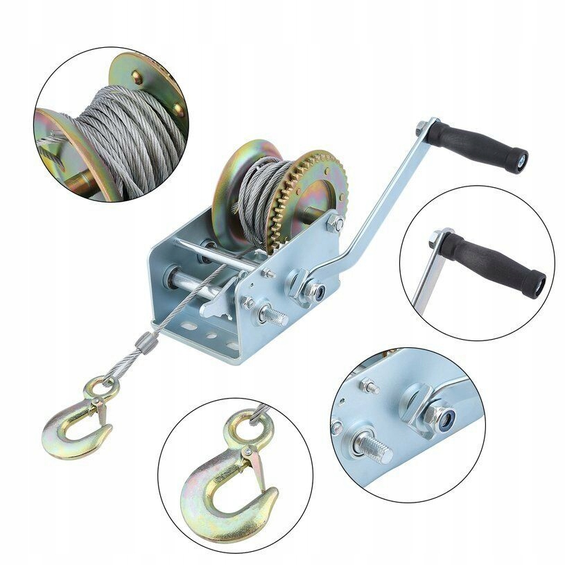 Лебідка кривошипна — це багатофункціональний пристрій, який використовується для переміщення та підйому різного роду вантажів. Лебідка має рухомий гак із захистом, вона виготовлена з високоякісних матеріалів з відповідною міцністю, стійкою до погодних умов. Для намотування/розмотування сталевого канату використовується рукоятка. Його можна використовувати, серед іншого, для перетягування транспортних засобів, човнів на причіп, перетягування транспортних засобів / квадроциклів у полі, розтягування сітки огорожі, перетягування важких предметів. Має запобіжник із храповою пружиною із загартованої сталі.