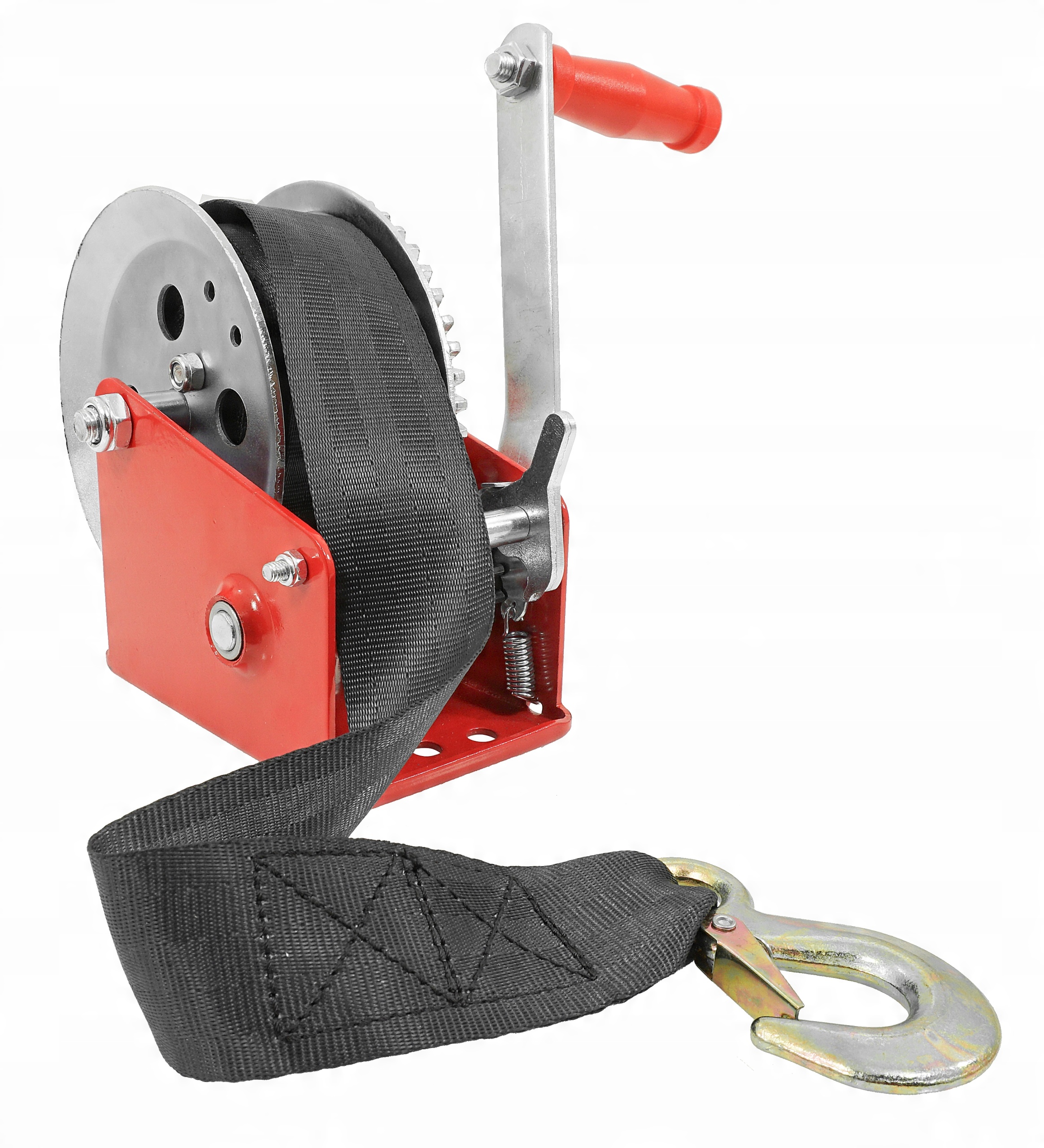 Це лебідка з міцною сталевою конструкцією, призначена для лебідки невеликих човнів, водних мотоциклів, квадроциклів, невеликих транспортних засобів тощо. Вона має легкодоступний важіль зміни напрямку обертання: згорнути/розгорнути. Лебідка виготовлена з високоякісних матеріалів з відповідною міцністю - конструкційна сталь і литий гак з поворотною пружиною. Пристрій управляється рукояткою разом із храповим механізмом, ці властивості дозволяють піднімати та опускати предмети. Його можна використовувати, зокрема, для розтягування сітки огорожі, прив’язування, кріплення та перетягування важких і великих предметів.