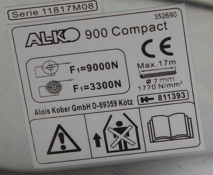 Ручна лебідка AL-KO з максимальною вертикальною тягою 900 кг призначена переважно для причепів. Лебідка має кривошип, який кріпиться гвинтом. Пристрій має автоматичне гальмо тиску навантаження із захистом від зворотного ходу. Лебідка продається в комплекті з тросом довжиною 12,5м