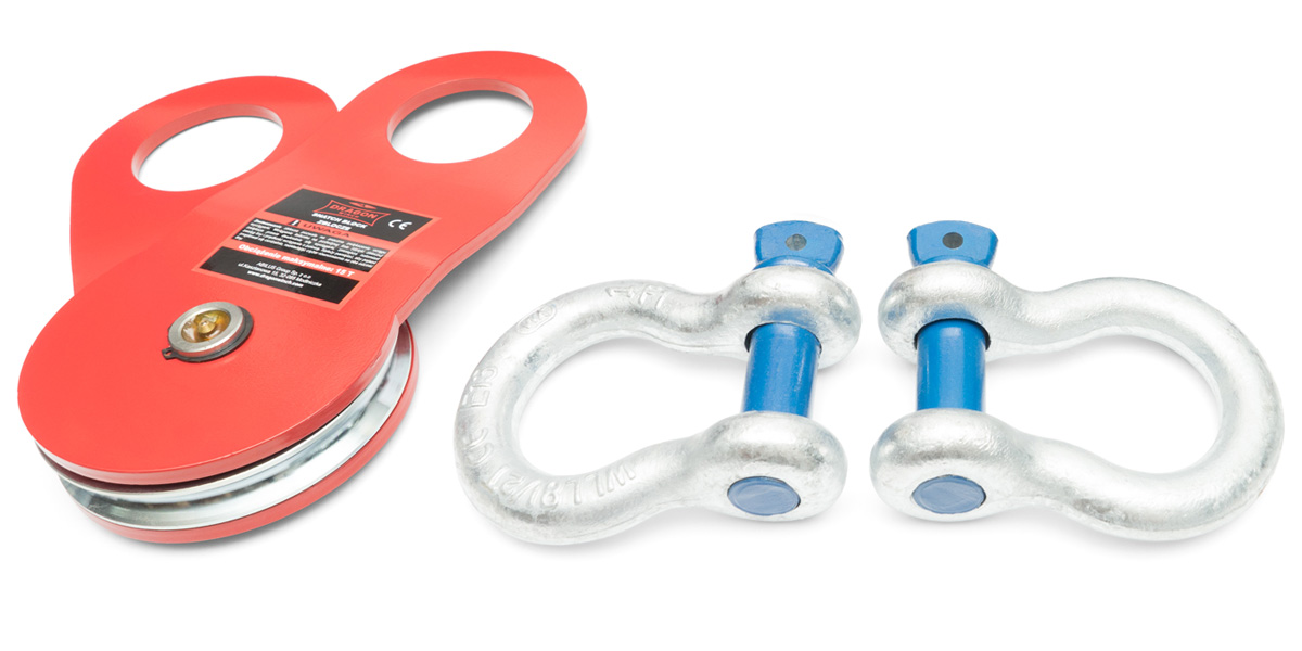 Цей комплект дозволяє подвоїти тягову силу вашої лебідки, як показано на малюнку вище. Це також буде корисно, коли ми хочемо надати інший напрямок волосіні, яка намотується на барабан під великим кутом.