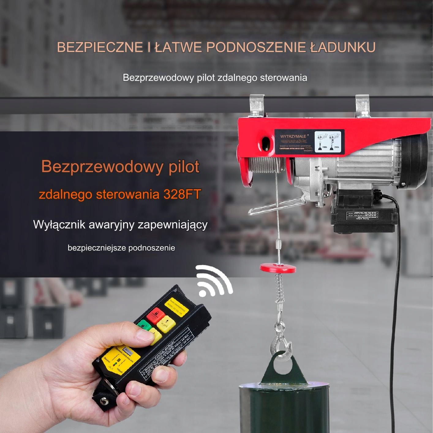 Завдяки суцільному сталевому канату і міцному корпусу пристрій характеризується високою міцністю і стійкістю до інтенсивного використання. Ідеальне рішення для будівельних компаній, складів і професійних майстерень.
