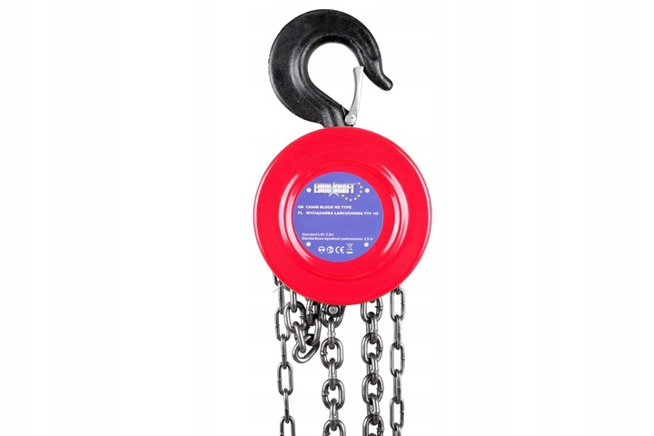 Гак виготовлений із міцного чавуну, а захист ефективно запобігає ослабленню піднятого вантажу. Ланцюгова лебідка поєднує малу вагу, високу вантажопідйомність і низьку ціну, що робить її ідеальною як для домашніх гаражів, так і для майстерень і складів.