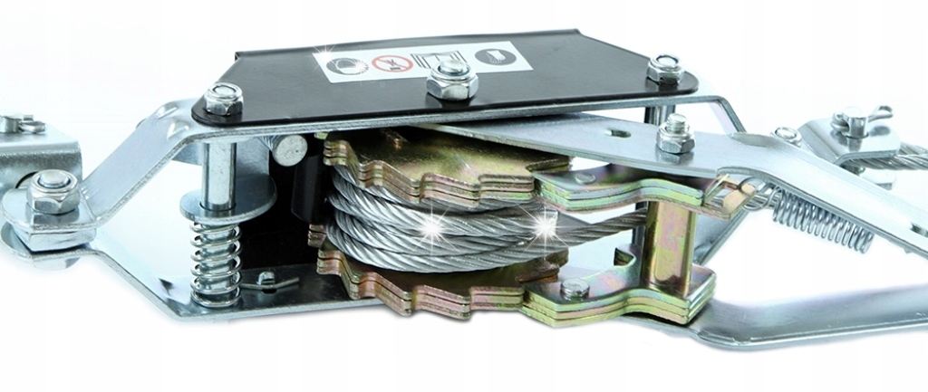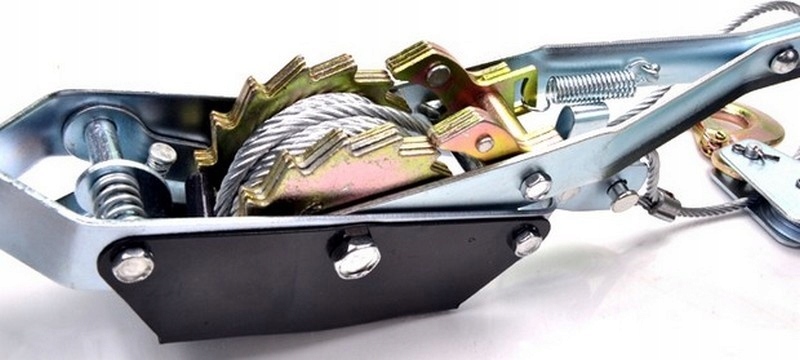 Канатна лебідка оснащена подвійним храповим механізмом, пристроєм, виготовленим з високоякісних, міцних матеріалів відповідної міцності (конструкційна сталь і литі гаки з поворотними пружинами), що робить її міцною конструкцією, що забезпечує тривалу і безпечну роботу.