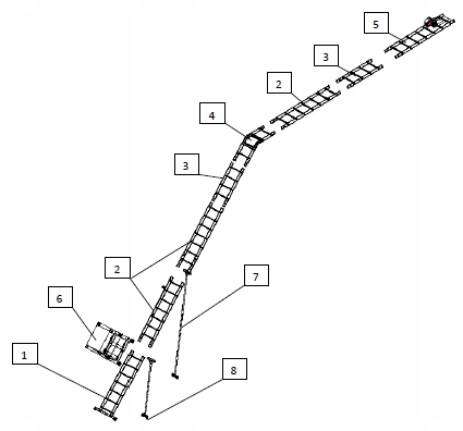 Сегменти збираються шляхом розміщення однієї частини драбини на спеціальному сталевому з’єднувачі, розташованому в іншій секції драбини, і скручування (замикання) цих сегментів за допомогою т.зв. гвинти. метелики. Таким чином ми отримуємо міцне з’єднання, зберігаючи легкість монтажу. Універсальність такого з’єднання полягає в тому, що можна з’єднувати будь-які сегменти.