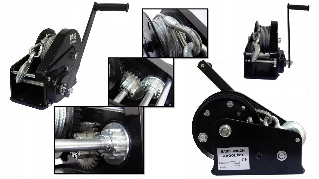 Тросова кривошипна лебідка максимальною вантажопідйомністю 2250 кг. Кривошипна лебідка з порошковим покриттям і автоматичним запобіжником. Лебідка ручна оснащена міцним гаком. Міцний металевий трос діаметром 6 мм і довжиною 15 м забезпечить комфорт і безпеку роботи. Доопрацьований механізм трансмісії (подвійна передача) дозволяє витягувати предмети вагою 2250 кг з невеликим зусиллям. Лебідка з канатною рукояткою ідеально підходить для автомобільних майстерень, евакуаторів, джипів, квадроциклів і човнів.