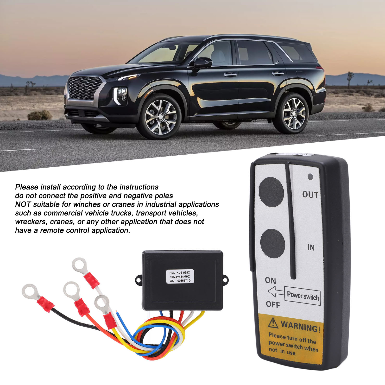 5. Нагадування: НЕ підходить для лебідок або кранів у промислових цілях, таких як комерційні вантажівки, транспортні засоби, аварійні машини, крани та інші програми, які не підтримують програми дистанційного керування.