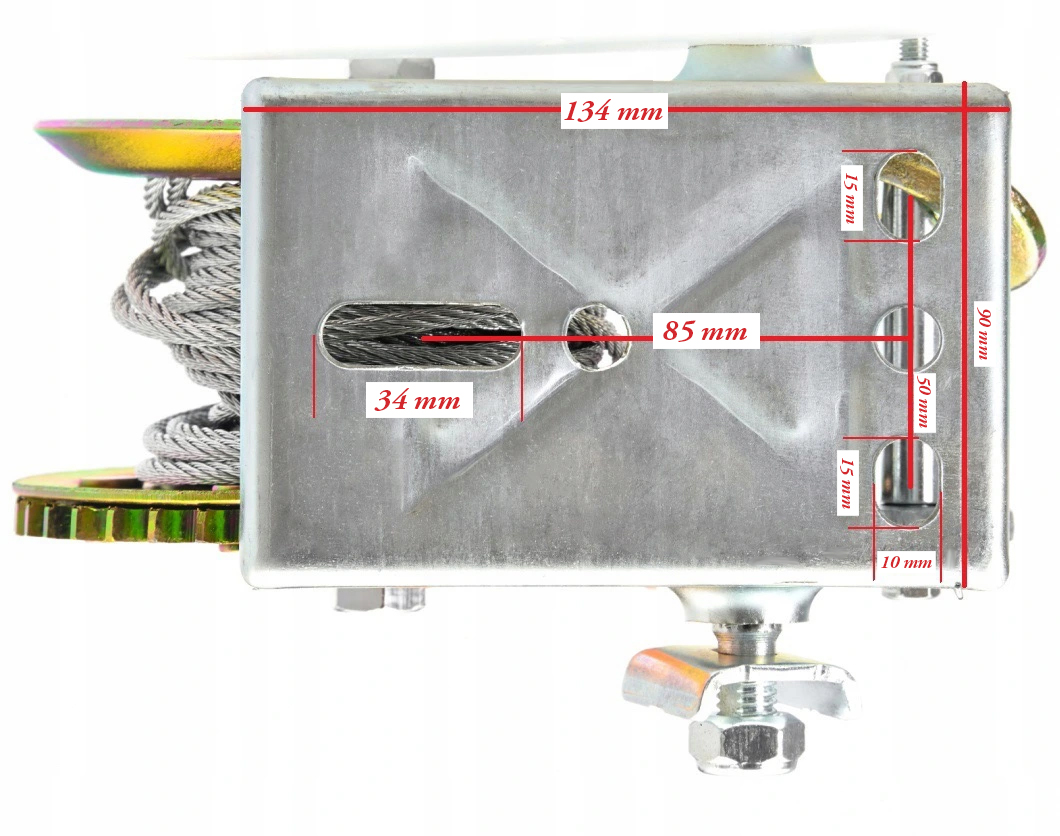 Пристрій виготовлено з високоякісної конструкційної сталі. Литий гак має поворотну пружину. Пристроєм керує рукоятка разом із храповим механізмом, який дозволяє підтягувати та опускати предмети. Ідеальне обладнання для протягування, зв’язування, кріплення та перетягування важких і великих предметів.