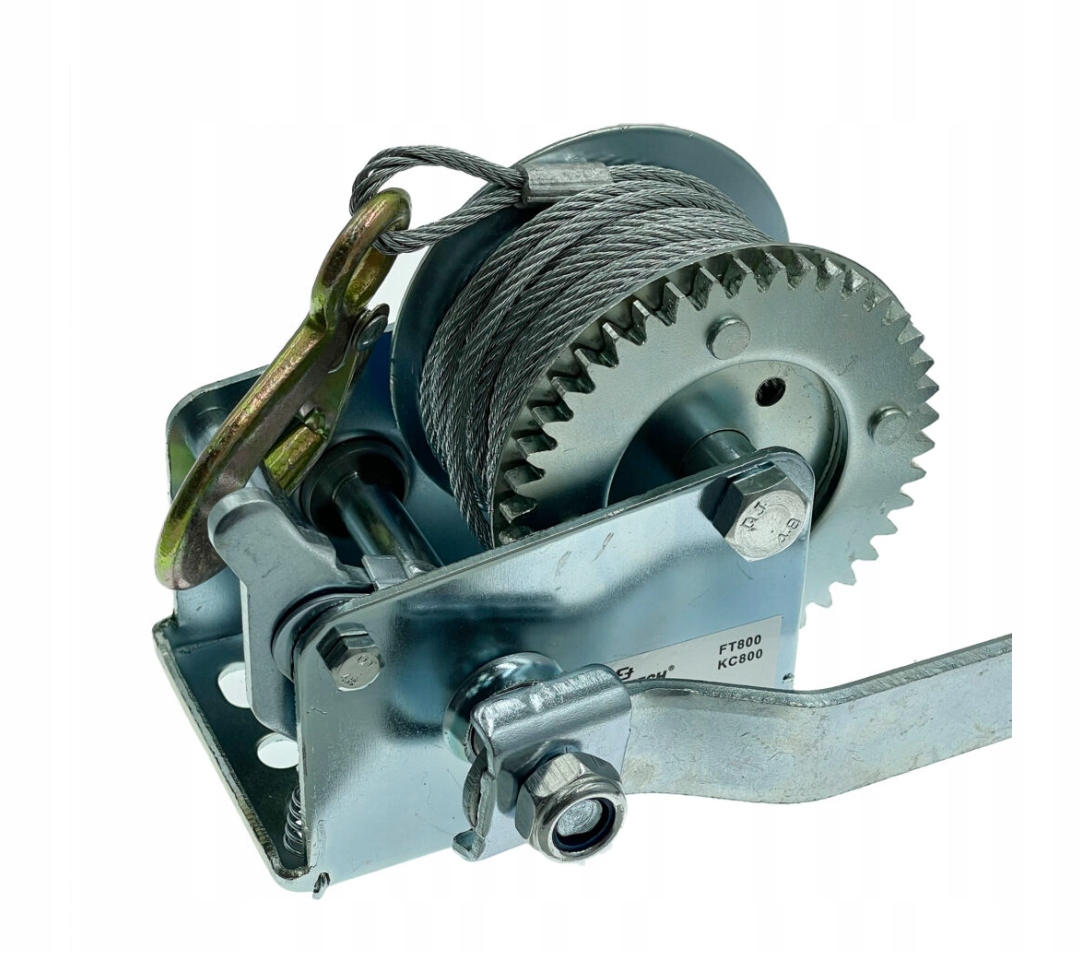 лебідка була виготовлена з високоякісних матеріалів з адекватною довговічністю - конструкційною сталі та литим гачком із зворотною пружиною. Він стійкий до погодних умов. Для управління пристроєм використовується ручний кривошип разом із механізмом храповика, ці властивості дозволяють безпечно витягувати та нижчі предмети. Він може бути використаний, серед іншого, для розтягування сітки паркану, зв'язування, прикріплення та перетягування важких і великих предметів, наприклад Квадратні човни тощо для причепів та буксирних машин.