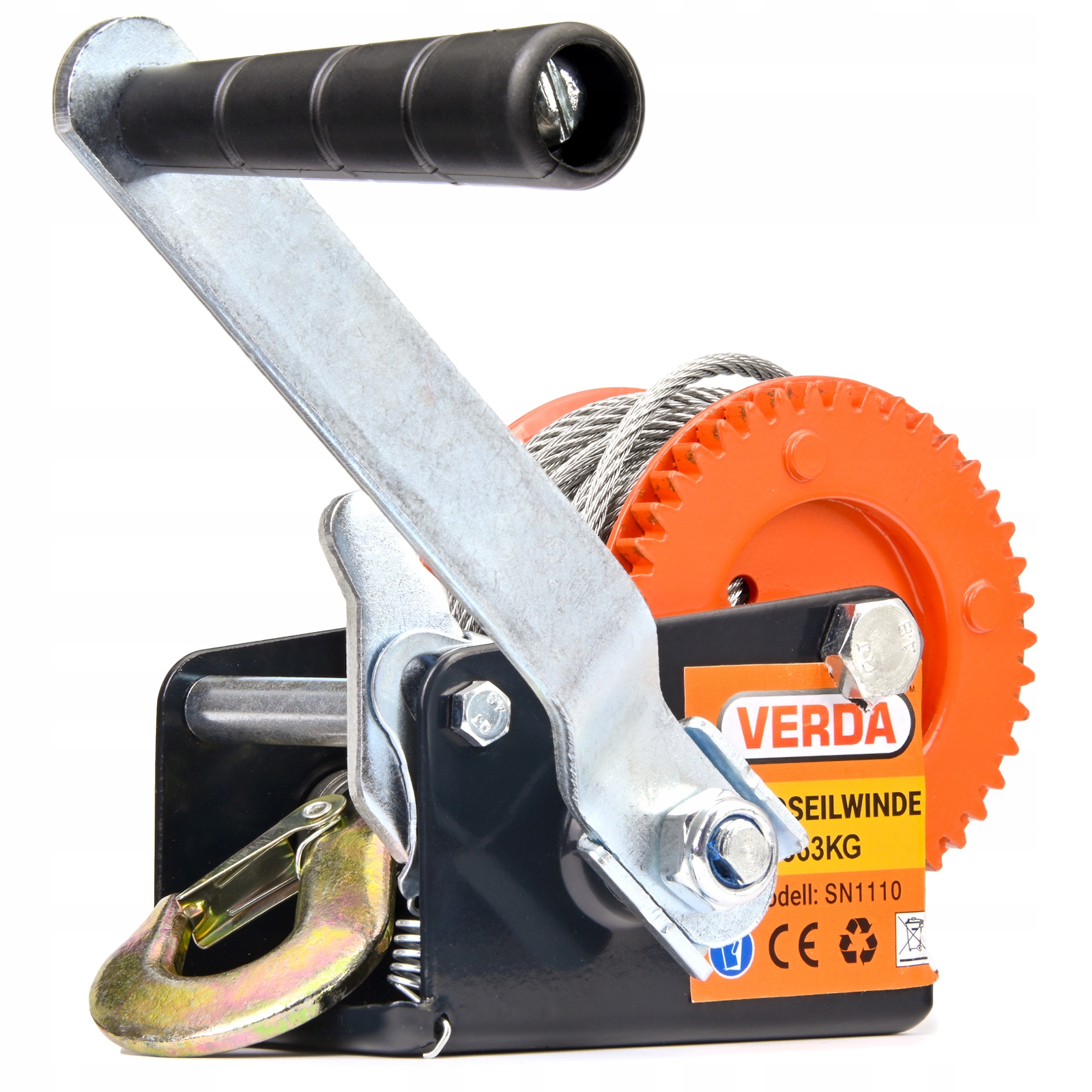 Лебідка ручна виготовлена з високоякісних матеріалів, що забезпечує її довговічність і надійність. Оснащений міцним литим гачком з поворотною пружиною. Обладнання забезпечує безпечний і безпроблемний підйом і опускання предметів.