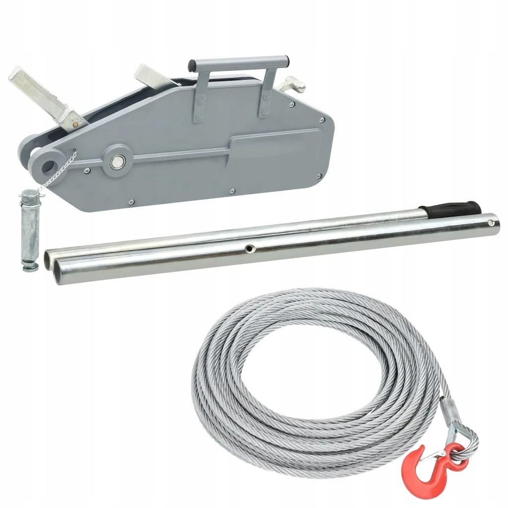 Цей пристрій має алюмінієвий корпус і внутрішній механізм із нержавіючої сталі. Канат оснащений гаком і запобіжною скобою, а підйомник має захист від перевантаження, що забезпечує високий рівень безпеки під час експлуатації. Лебідка оснащена сталевим тросом довжиною 20 м з високим розривним зусиллям і зносостійкістю. Оснащений гачком, який запобігає його випаданню. Компактний і легкий дизайн робить цей продукт придатним для невеликих або обмежених просторів.