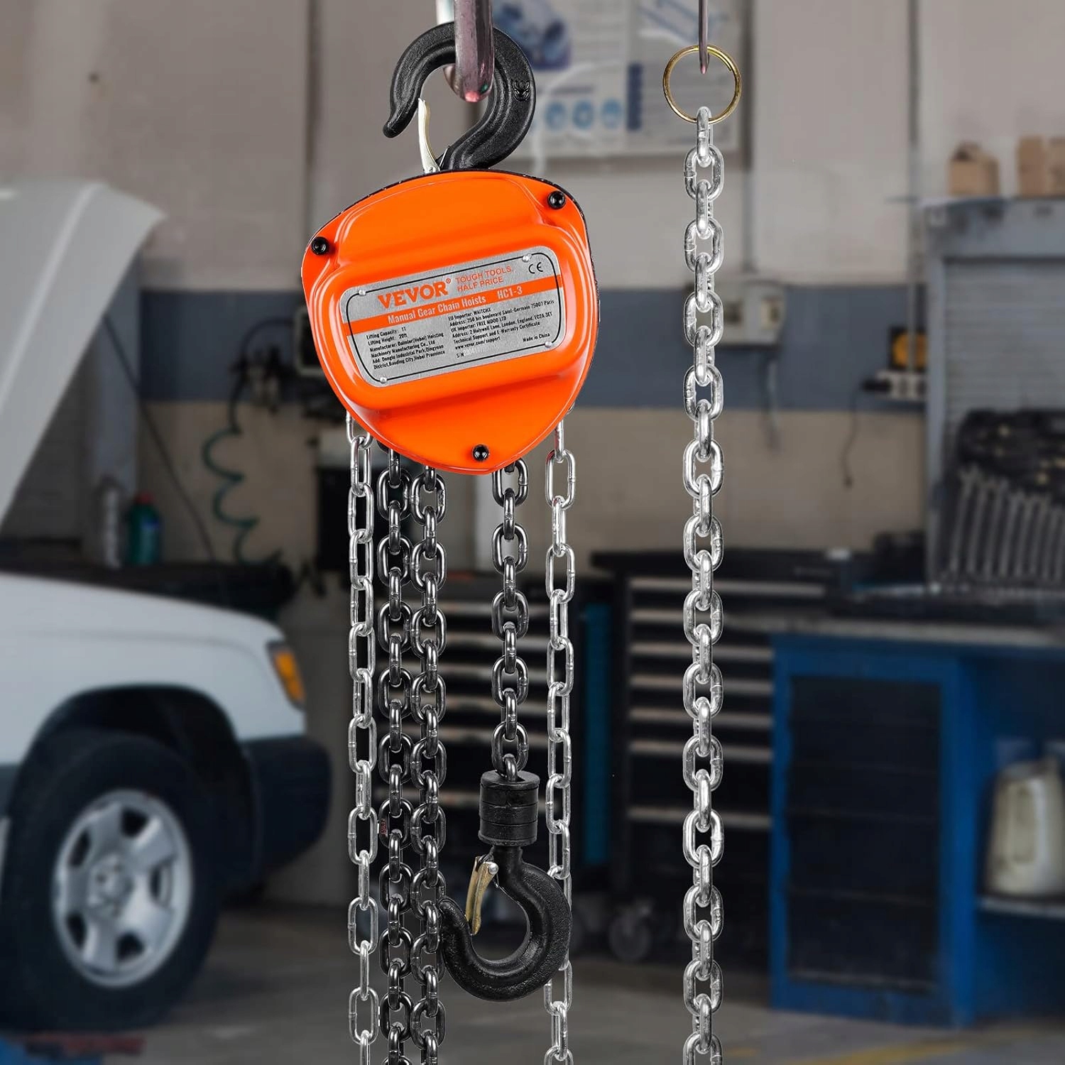 Вевор Лебідка | Вантажопідйомність 1Т | гачок 360° | Вуглецева сталь | Ланцюг G80