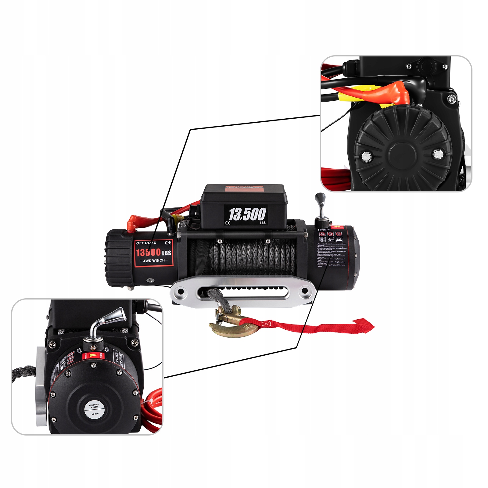 - Приголомшлива продуктивність: Вантажопідйомність електричної лебідки: 13 500 фунтів (6 123,5 кг); Потужність: 4,8 кВт (6,8 КВ); Передавальне число: 265:1. Потужний двигун поєднується з 3-швидкісною планетарною системою передач для більшої тягової сили та вищих швидкостей. Підходить для автомобілів, човнів, вантажівок, джипів, модифікованих транспортних засобів і багатоцільових причепів.