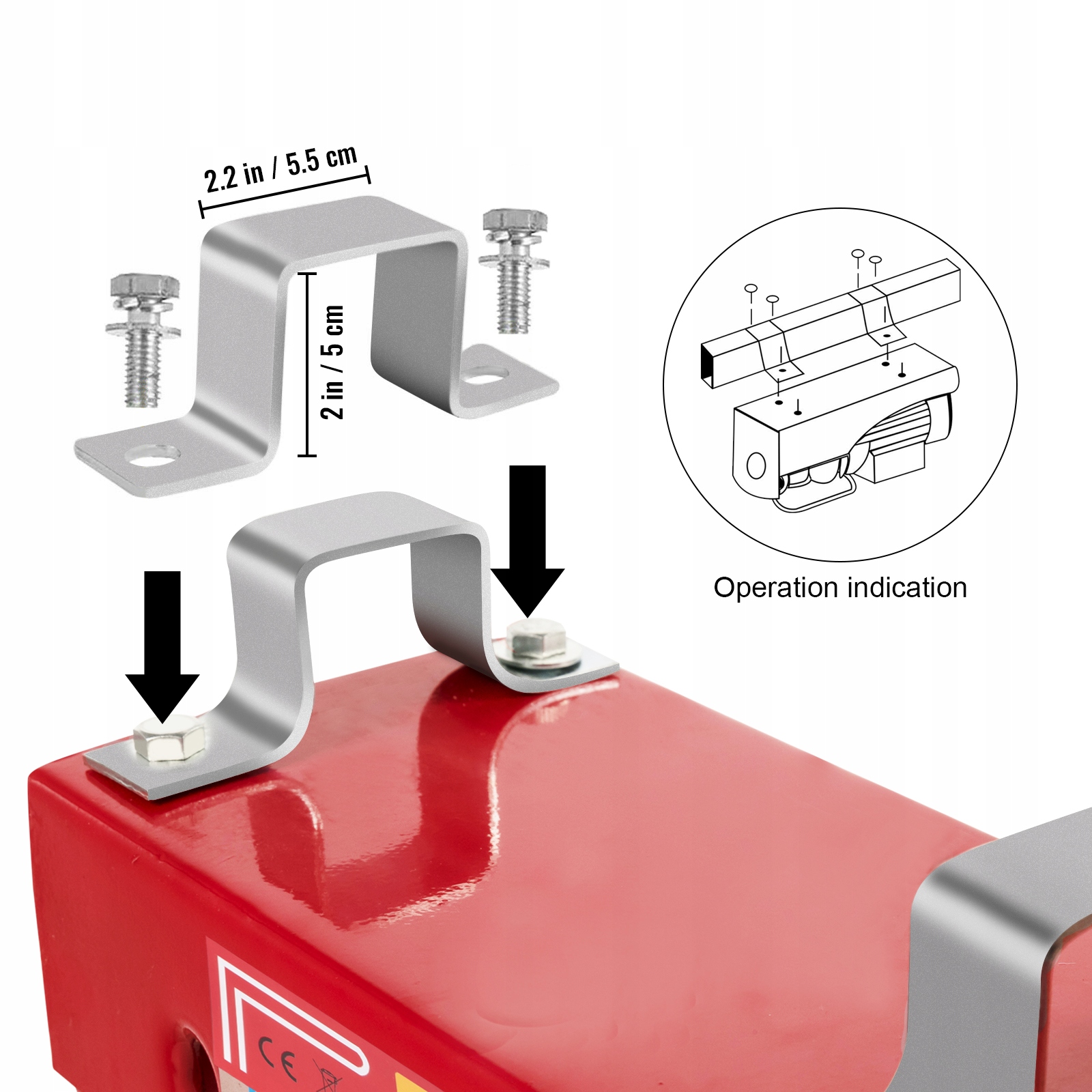 Щоб задовольнити ваші потреби, наша електрична таль обладнана металевим монтажним кільцем, яке легко встановлюється. Тільки пам'ятайте, що ширина і висота планки не можуть перевищувати внутрішні розміри монтажних кронштейнів. Ширина каблучки: 2,2 дюйма/5,5 см; висота: 5 см.