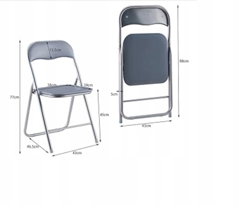 - Стійкий і міцний: у складеному вигляді – 43 х 5 х 88 см, у розкритому – 43 х 47 х 77 см. Виготовлений з міцної сталевої конструкції, складний стілець має максимальну вантажопідйомність 100 кг. Крім того, нековзкі накладки на ніжках не тільки запобігають подряпинам на підлозі, але й допомагають запобігти ковзанню та підвищують стабільність.