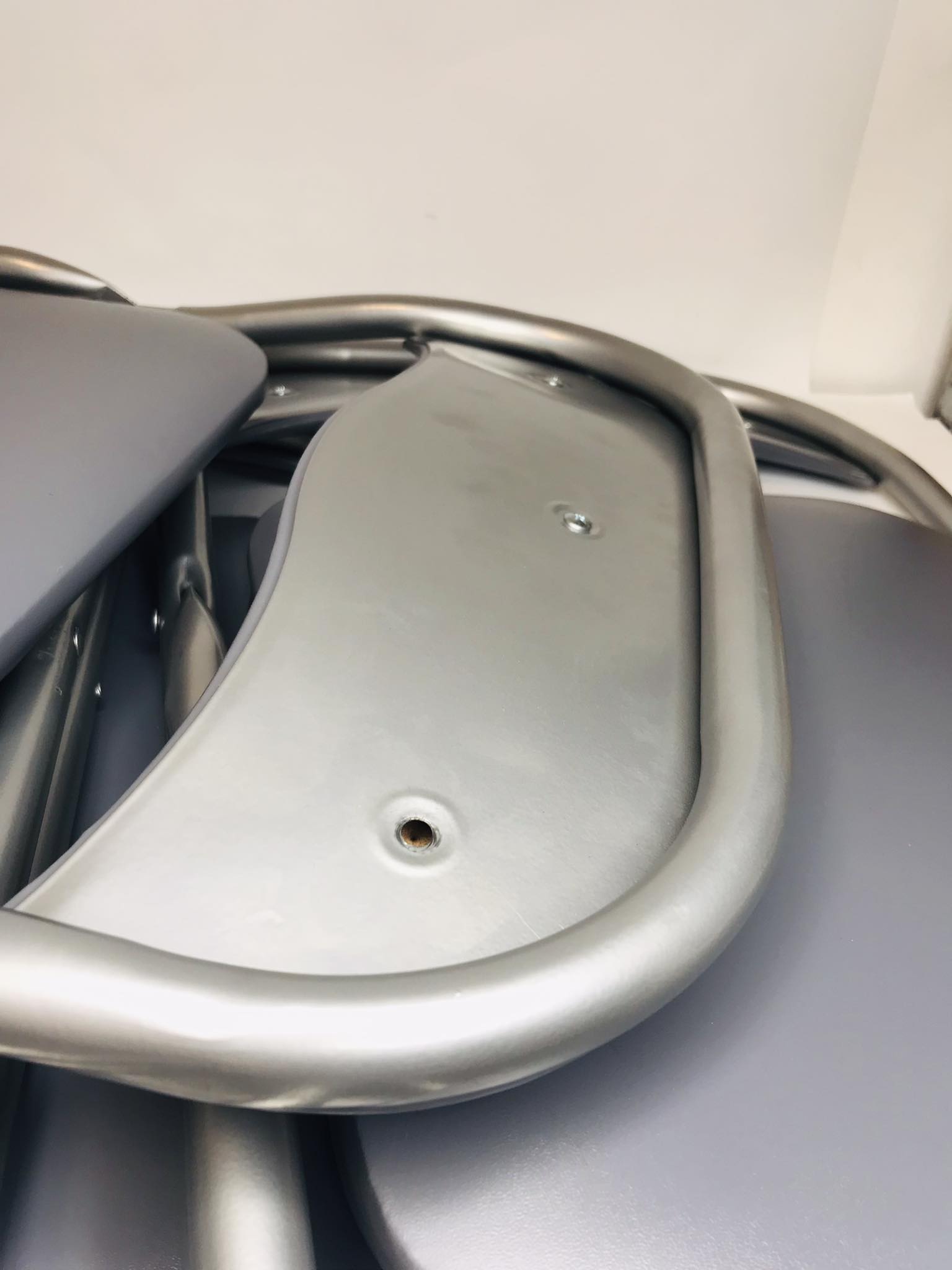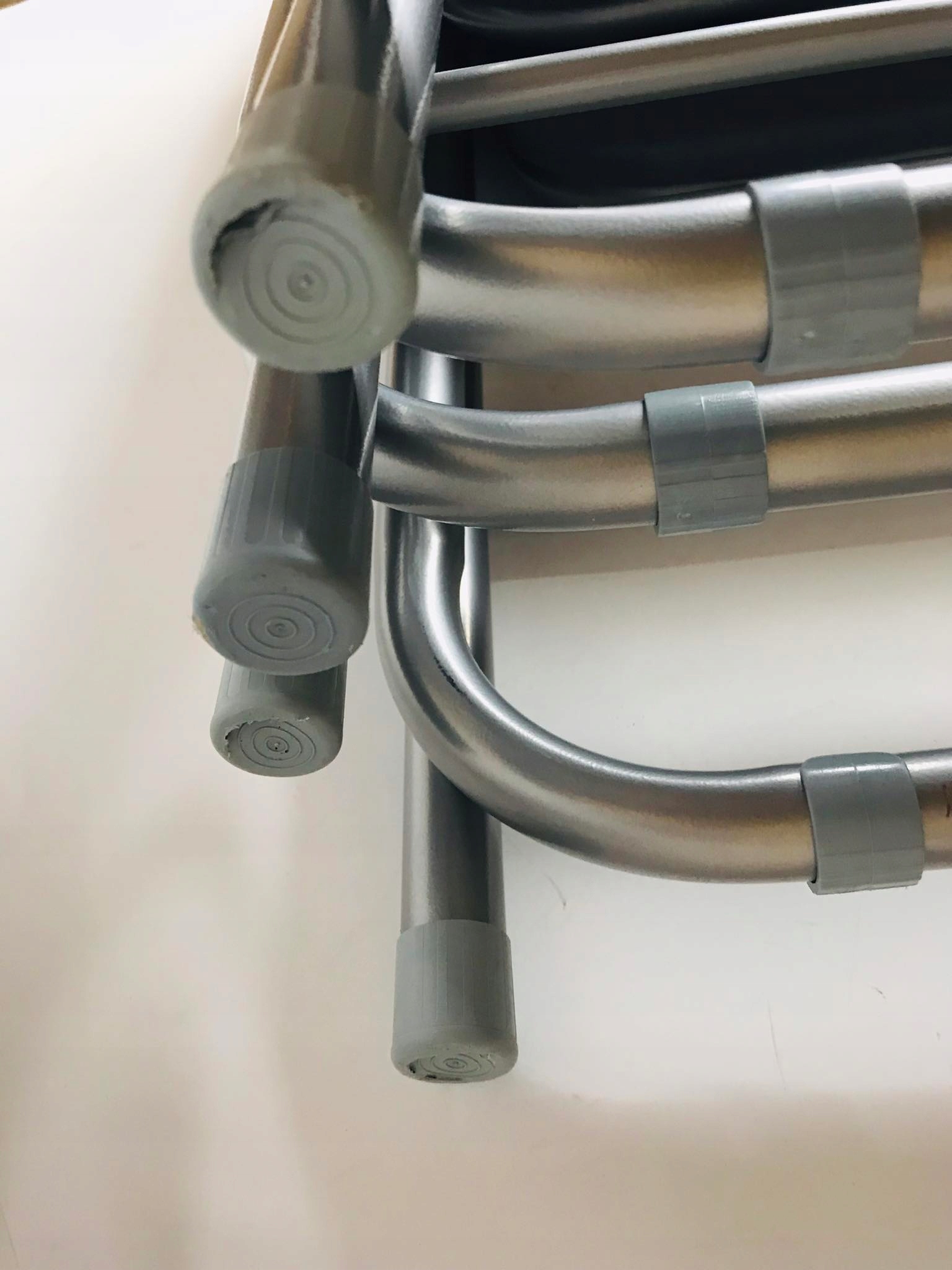 Увага! Набір стільців з вітрини магазину. Крісла мають подряпини та потертості на металевій конструкції. На одному стільці відсутній гвинт на спинці спинки. Деякі з гумових накладок на ніжки потріскані. Картонна упаковка укріплена скотчем. Крісла повністю справні. Пропозиція також включає кілька фотографій фактичного набору.