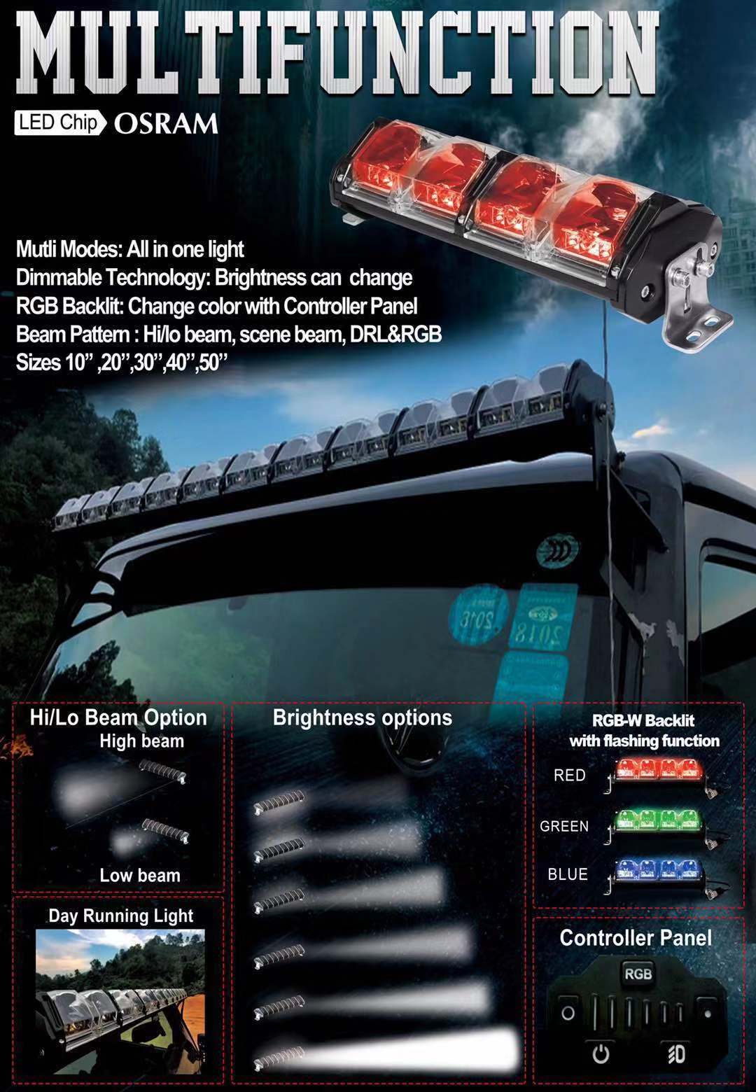 Революційна світлова панель від AURORA - надайте своєму квадроциклу унікальний вигляд завдяки багатофункціональному освітленню! Можливість перемикання діапазону освітлення, повна функція RGB і дуже високі значення світлового потоку.