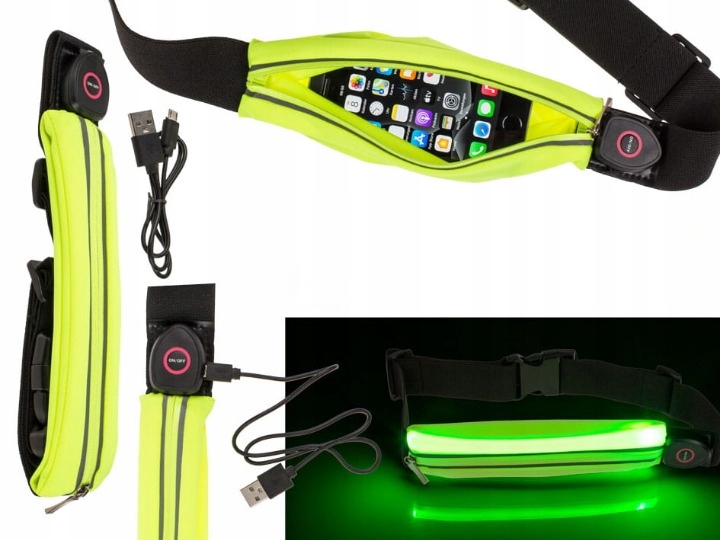 LED BAG BELT для БІГУНІВ – ФЛУОРЕСЦЕНТНИЙ – СВІТИТЬСЯ В ТЕМРЯВІ + USB