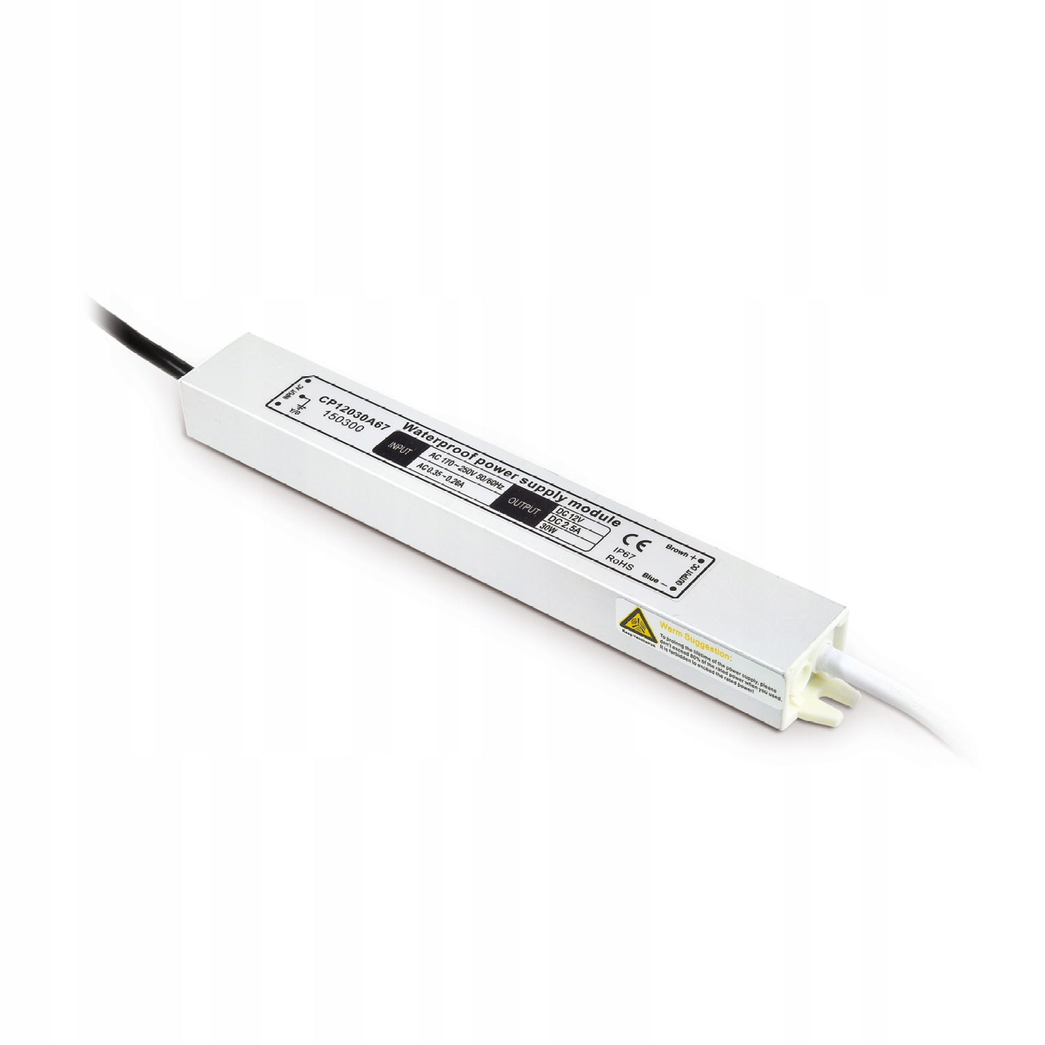 МОДЕЛЬ ІНДЕКС НАПРУГА [В] СТРУМ [A] МАКС. ПОТУЖНІСТЬ [Вт] РОЗМІРИ [мм] ВАГА НЕТТО [кг] УПАКОВКА [шт.] КОД EAN LED БЛОК ЖИВЛЕННЯ 30W IP67 KYKBA12-2501 12 2.5 30 134х31х21 0,14 1 5900605093351