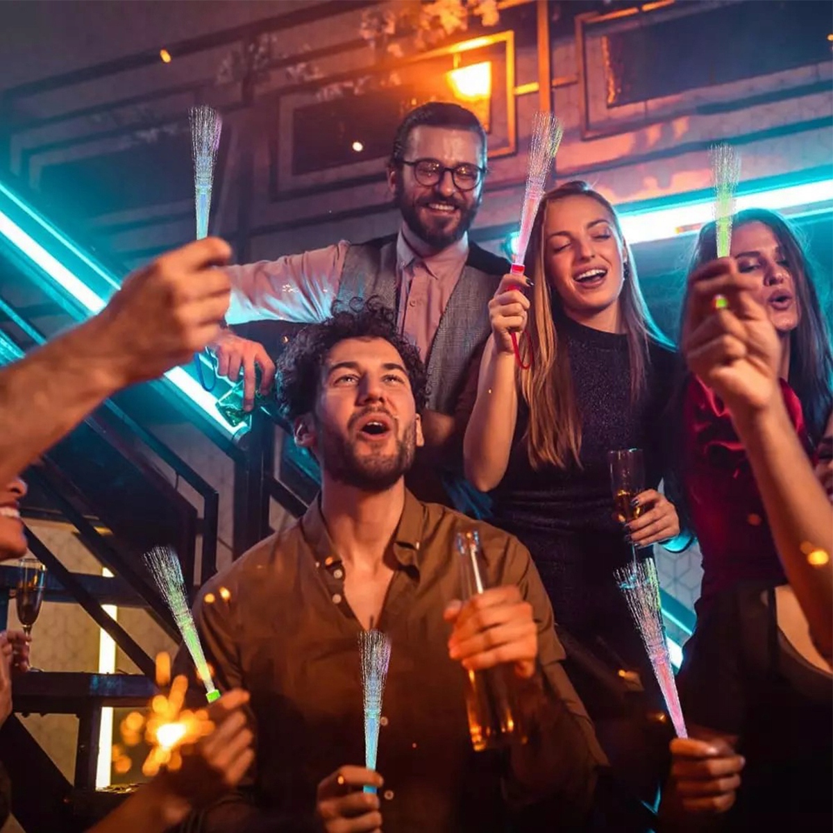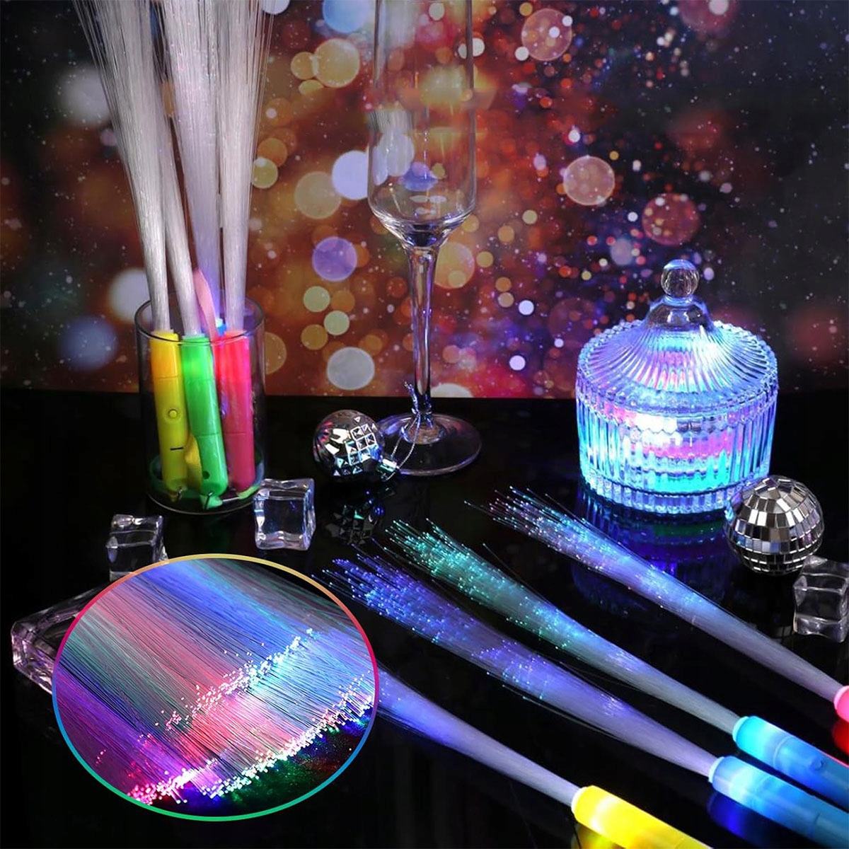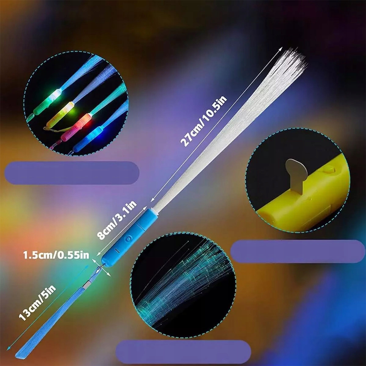 🎉Прости у використанні – палички зі скловати (з ремінцем) дуже прості у використанні. Просто увімкніть перемикач на ручці та налаштуйте режим освітлення відповідно до ваших потреб. Не потрібна складна послідовність дій - і дорослі, і діти на вечірці можуть легко використовувати ці світлодіодні палички.