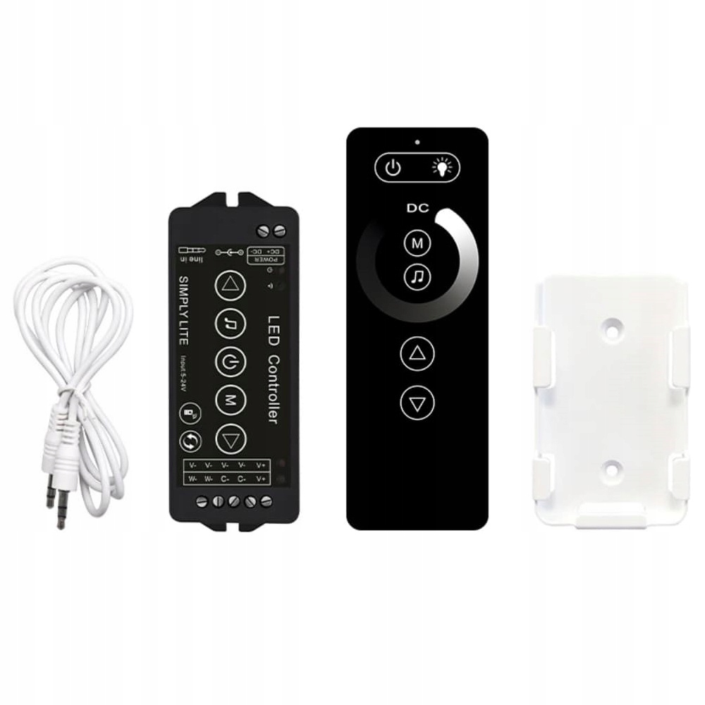 Обираючи наш диммер SmartLite, ви отримаєте всі необхідні аксесуари для керування освітленням Mono 12 В та 24 В. Окрім пульта дистанційного керування та приймача, підключеного між джерелом живлення та світлодіодною стрічкою, ви також знайдете тримач для пульта дистанційного керування та кабель для підключення звукового аудіовходу.