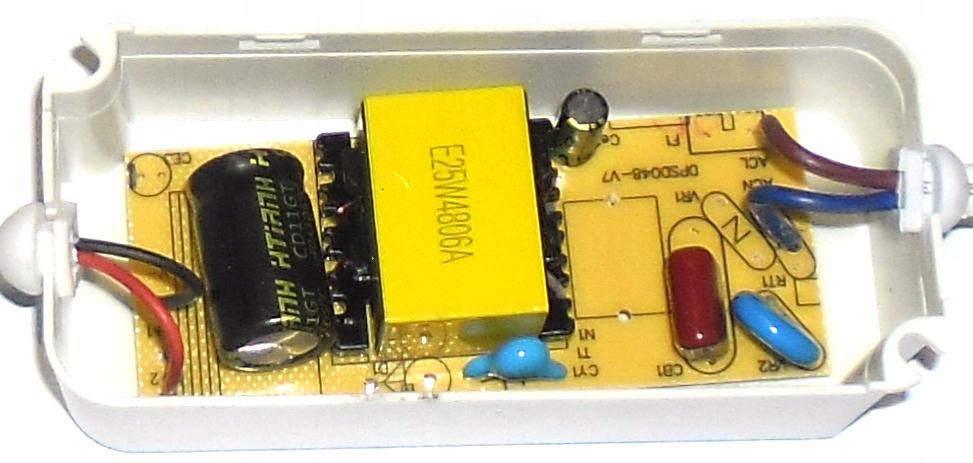 - Вхід: синій і коричневий дроти, живлення 230 В від розетки