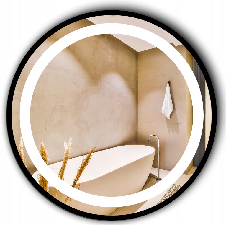 LED ДЗЕРКАЛО ЧОРНА РАМА 70см КРУГЛЕ З ПІДСВІЧУВАННЯМ ВОДОНЕПРОХОДНІ СВІТОДІОДИ 120 діодів