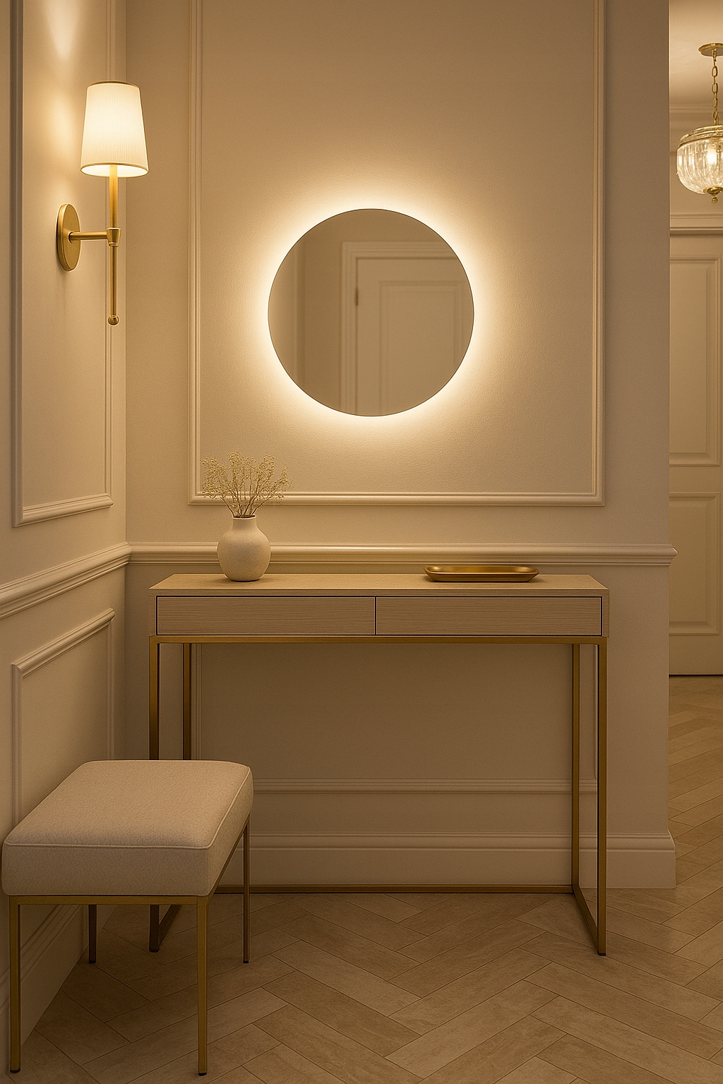 Польське світлодіодне дзеркало COB діаметром 50 см для ванної та передпокою. Рівномірна лінія світла (COB) делікатно освітлює простір, оптично збільшуючи його - ідеально підходить для невеликих приміщень і в той же час елегантно у великих інтер'єрах. Відшліфовані з ЧПУ та поліровані краї забезпечують першокласну обробку. У комплект входить блок живлення IP67, підвіски і шпильки - збірка без сюрпризів. Вища ціна = вища якість: польське виробництво, міцні компоненти та ідеальна посадка.