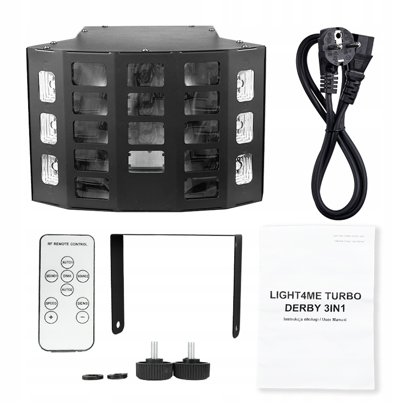 Однією з найважливіших переваг LIGHT4ME TURBO DERBY 3IN1 є широкий набір функцій. Пристрій пропонує повнодіапазонний диммер, який дозволяє точно регулювати інтенсивність світла відповідно до умов на сцені. Стробоскоп з регульованою швидкістю, ефект дербі та його макроси створюють унікальну атмосферу, додаючи енергії та динаміки кожній події. Освітлювальний прилад може працювати в режимах auto, sound, master/slave і DMX - завдяки їм користувач має практично повний контроль над створюваними світловими ефектами і може налаштовувати освітлення під будь-які умови. Можливість керувати ним за допомогою бездротового радіопульта робить пристрій надзвичайно зручним і простим у використанні, що цінують як професійні ді-джеї, так і організатори урочистих заходів.