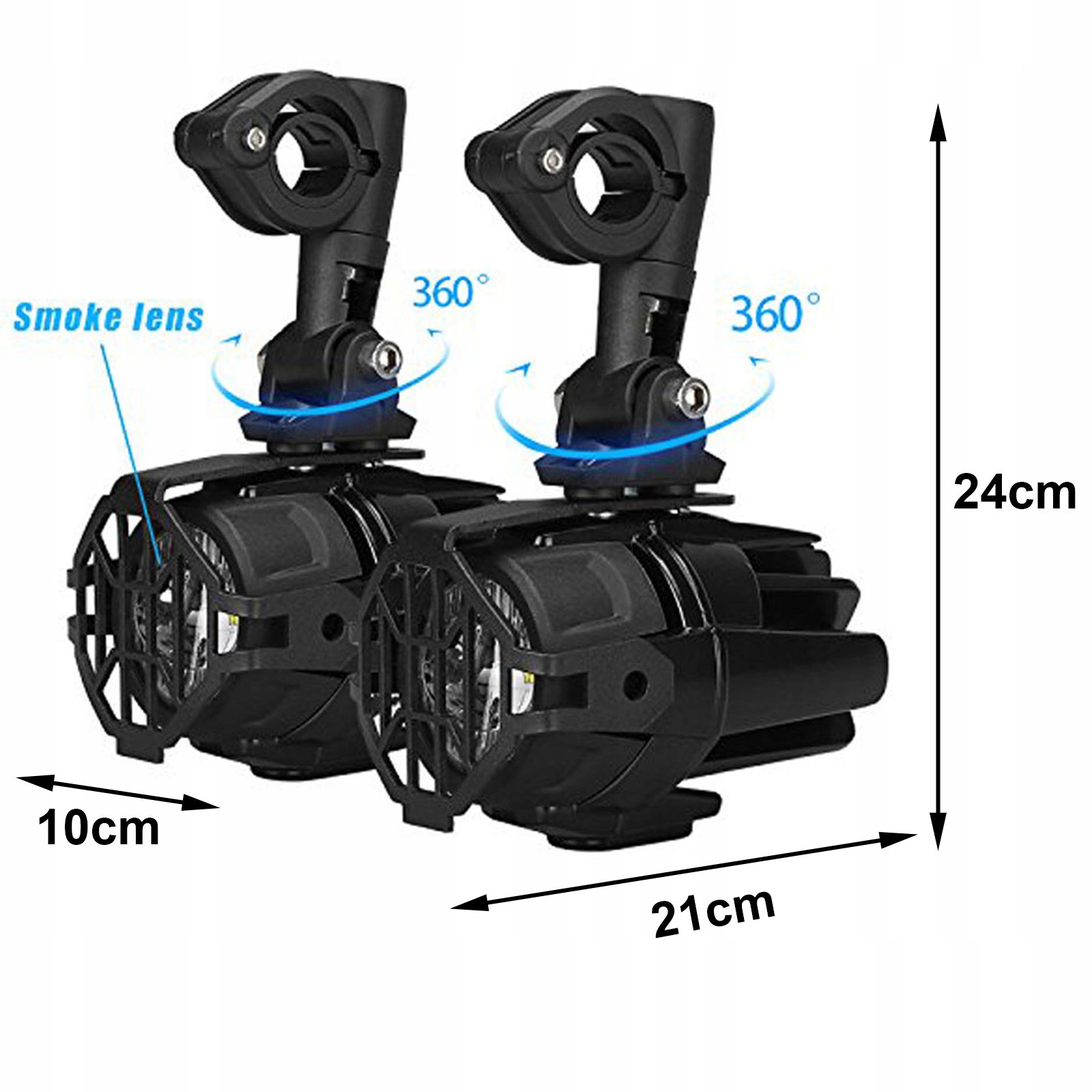 У лампах використовуються світлодіоди CREE з чудовою оптикою, що дають багато світла. Повна проводка включена. Додаткові кубики з вільним виходом для кабелю дозволяють підключатися до існуючої галогенної установки. Лампи стійкі до ударів, бруду та води. Вони призначені для монтажу на трубу діаметром 18-22 мм. Галогенні тримачі мають поворотні та нахиляючі кронштейни, що дозволяє встановлювати їх у багатьох місцях та ідеально розташовувати.