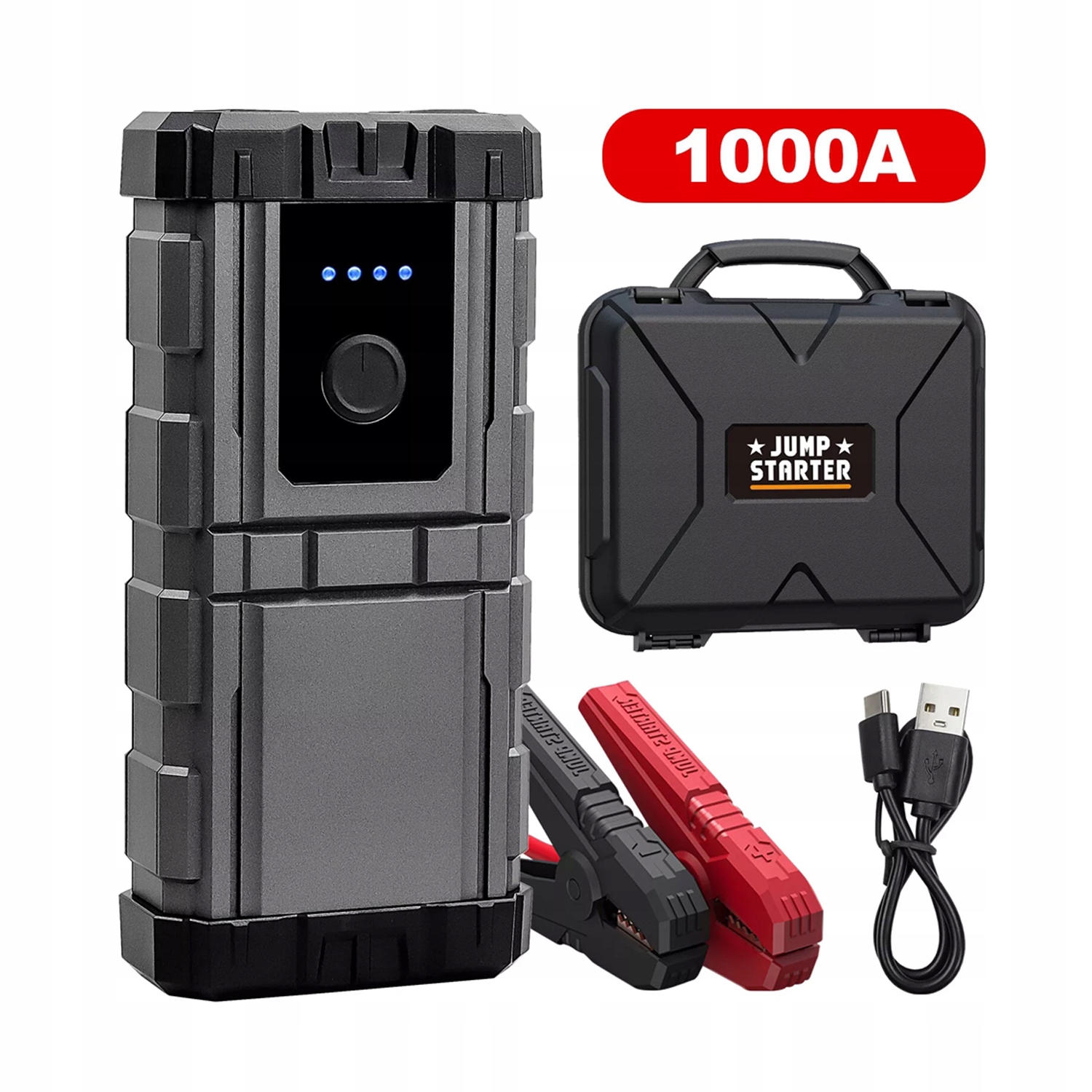 забезпечує 1000 піку, здатний до ефективного запуску -повністю вивантажених або низькопостійних акумуляторів у транспортних засобах з бензиновим двигуном з 4,0 л або дизельним 2,5 л.