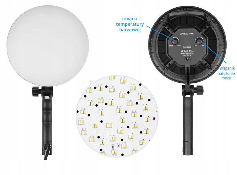Професійна світлодіодна лампа з регулюванням яскравості в діапазоні 10-100% (диммер), завдяки чому ми можемо регулювати інтенсивність світла під виконувану діяльність.