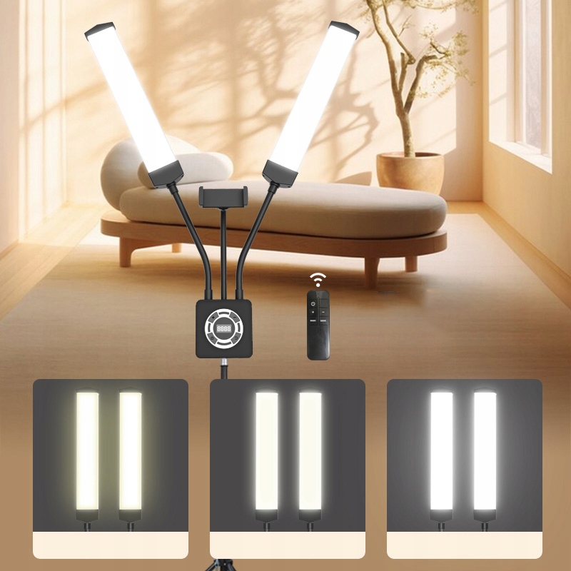 Це світлодіодна лампа, оснащена підставкою та пультом дистанційного керування, потужністю 40 Вт і температурою кольору, що регулюється в діапазоні 3200–5600 К.