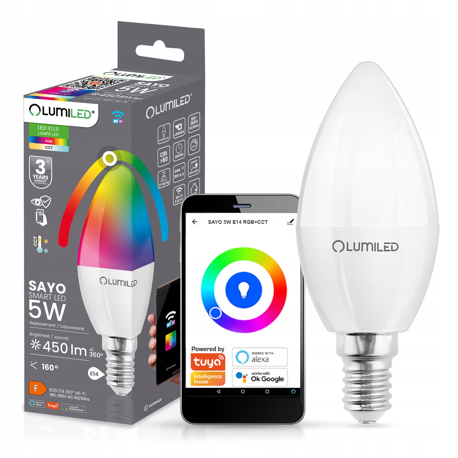 Smart bulb LED RGB TUYA WiFi SMART серії SAYO від LUMILED з база b>E14 з потужністю 5W і світловим потоком 450lm.