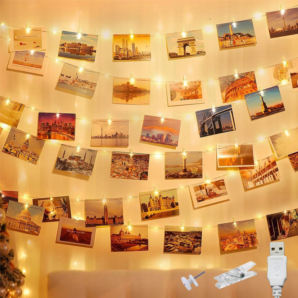 Ялинкові вогні для підвішування фотографій/листівок ідеально підходять як прикраса спальні, на Різдво, весілля, День святого Валентина, вечірки, паби, концерти, покази мод, вітрини тощо.