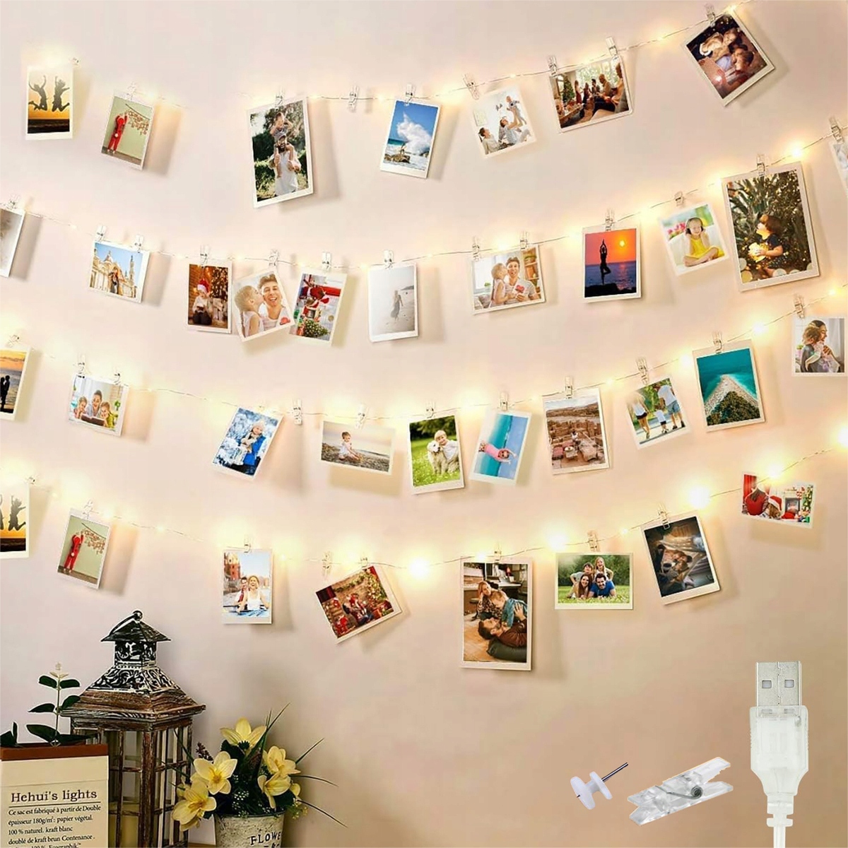 Наші теплі білі різдвяні вогники для приміщень мають 120 світлодіодів і довжину 12 метрів. Набір містить 60 прозорих затискачів і 20 цвяхів для демонстрації багатьох фотографій, листівок, принтів, дитячих робіт, малюнків, цитат тощо. Ці різдвяні вогні — це гарний і практичний спосіб розмістити фотографії в будь-якій кімнаті!