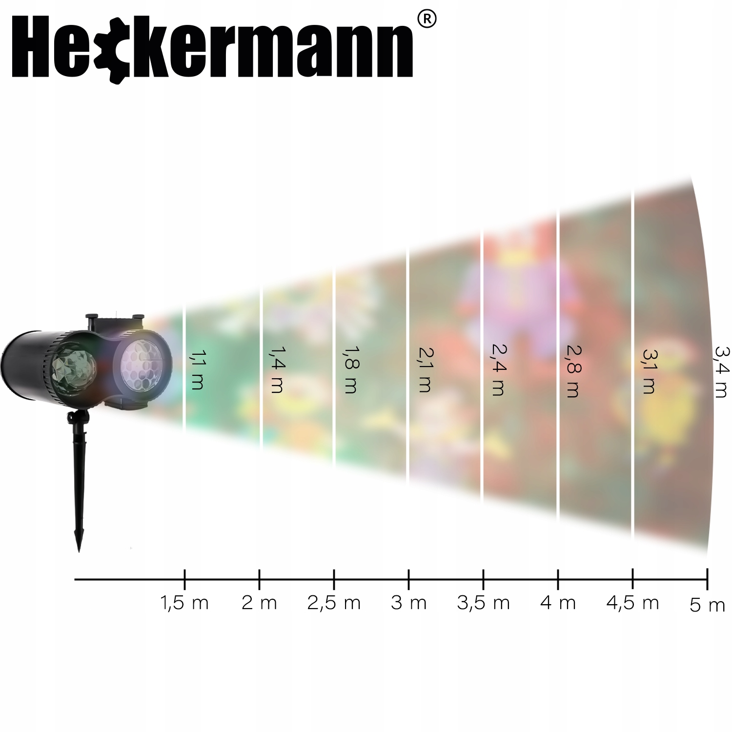 - Незалежно від того, чи збираєтеся ви використовувати його на фасаді будинку, балконі, саду чи навіть у приміщенні, світлодіодний проектор Heckermann W1805 стане ідеальним доповненням до вашої різдвяної композиції.