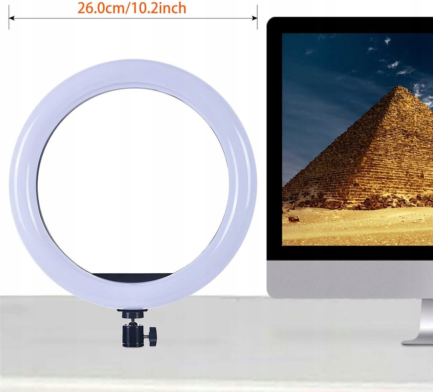 - Anti -diameter of the ring lamp: 26 cm (10 ")/16 cm (6.3")