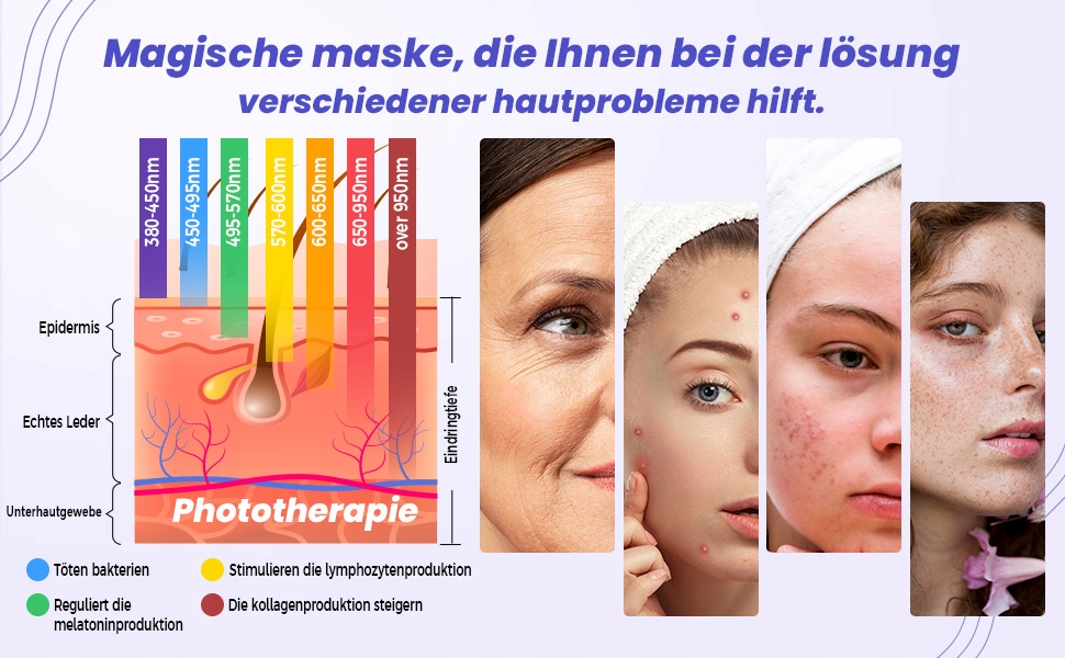 - 【Світлодіодна маска для обличчя】Створена з урахуванням краси обличчя, вона використовує природні світлодіодні світлові хвилі для передачі на шкіру для активації колагену, підтримки росту колагену в шкірі, робить шкіру чистішою та яскравішою, зміцнює пори, покращує яскравість шкіри, а також робить її більш гладкою та еластичною, підтримуючи виведення шкірних отрут