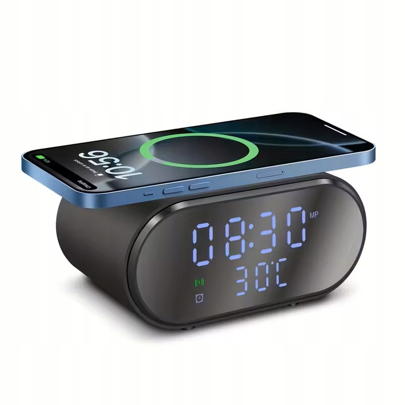 ⏰ Сучасний світлодіодний будильник з індуктивним зарядним пристроєм – 2 в 1!