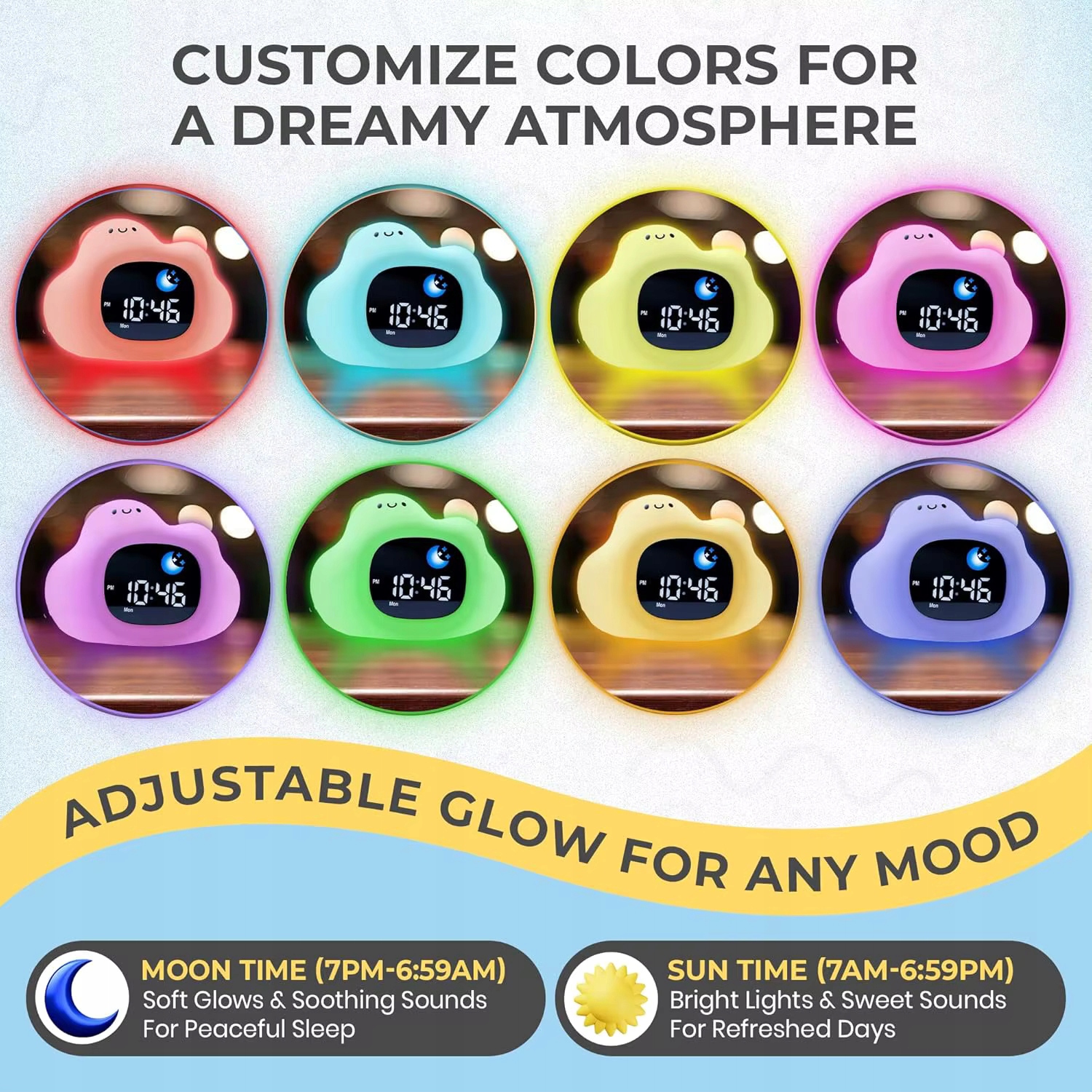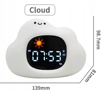 LED НІЧНИК ДЛЯ ДИТИНИ, годинник CLOUD, будильник, звуки, подарунок