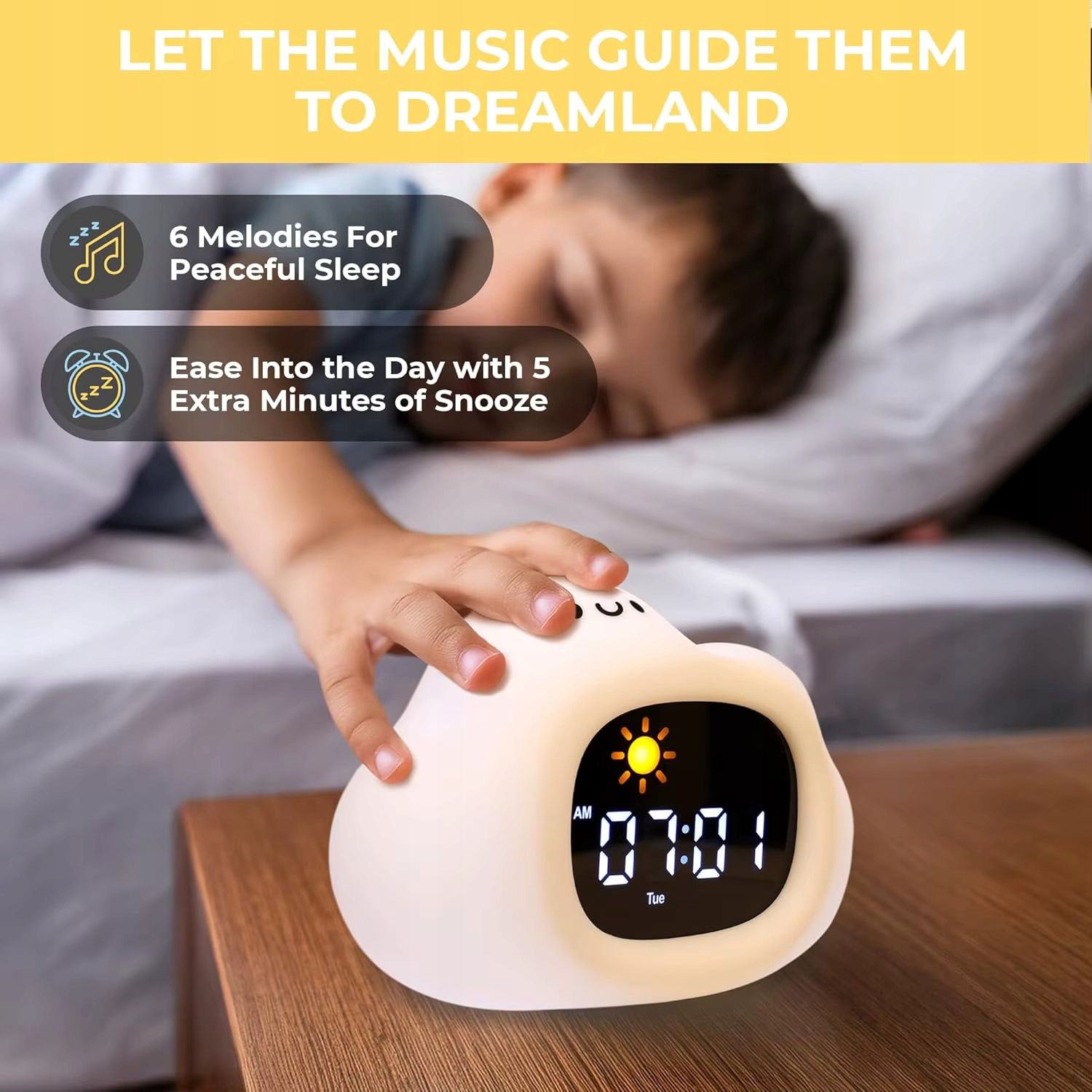 НІЧНИК ДЛЯ ДИТИНИ, CLOUD SILICONE LED годинник, будильник, тренажер для сну, сонник