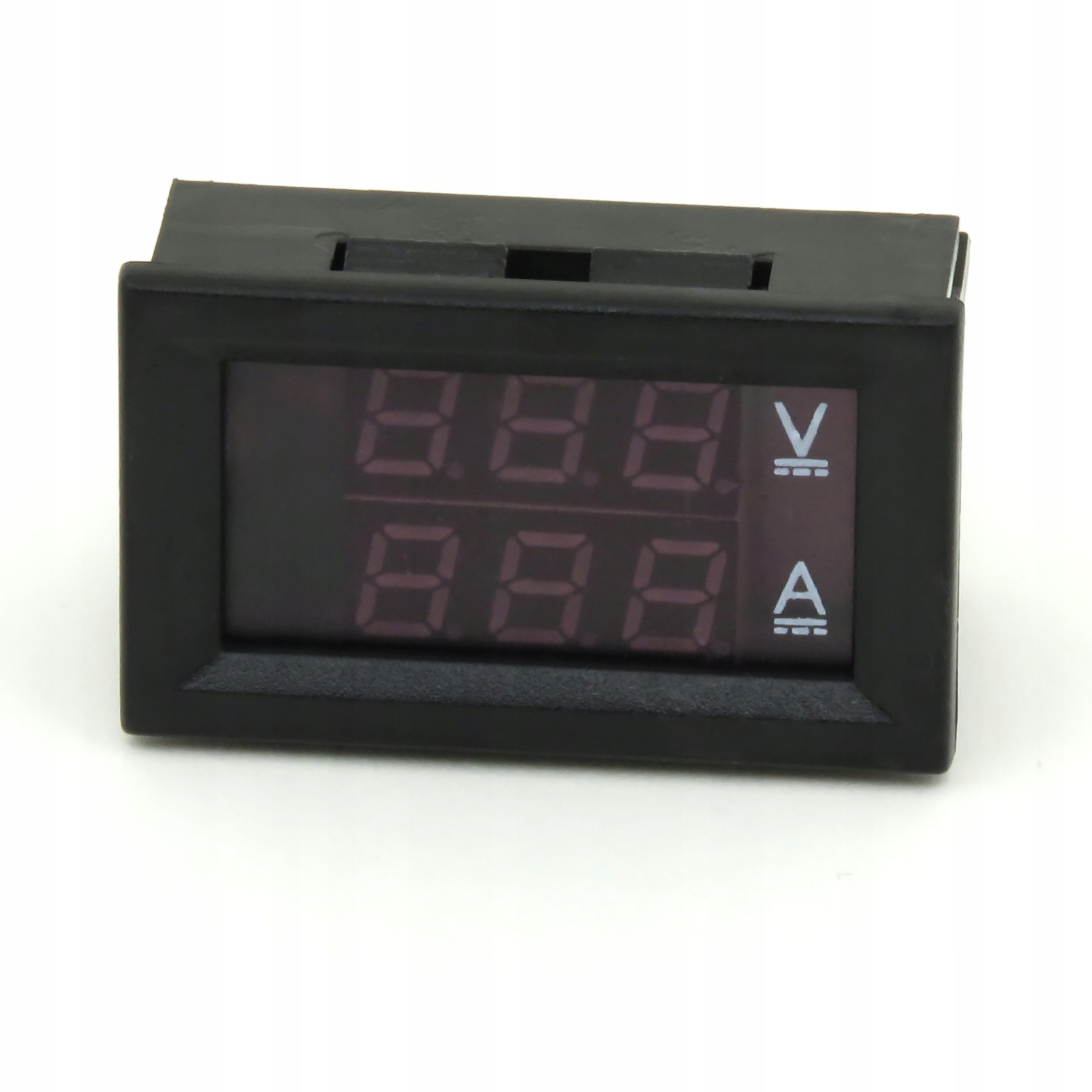 Цифровий щитовий лічильник із червоно-синім світлодіодним дисплеєм. Дозволяє вимірювати постійну напругу до 100 В і силу струму до 10 А. Оснащений кабелями довжиною 15 см.