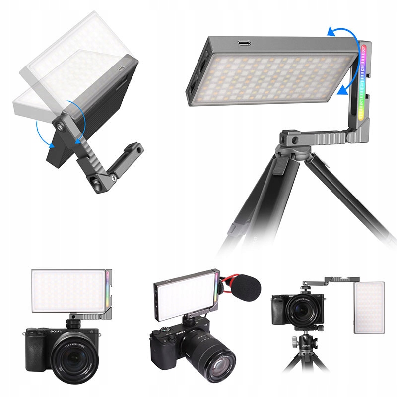 ✔️ Функціональний - завдяки 5 роз'ємам для стандартної різьби 1/4 дюйма та холодному башмаку ви можете встановити його на штатив, фотоапарат чи камеру. Рухомий кронштейн дозволяє встановити його під будь-яким кутом.