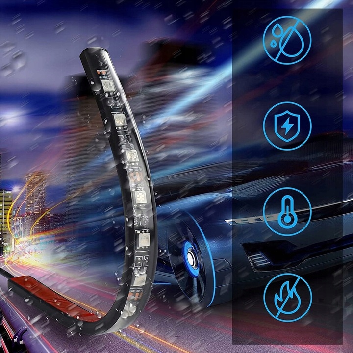 Світлодіодні стрічки легко змінять інтер'єр вашого автомобіля. Чотири водонепроникні світлодіодні модулі можна встановити під сидіннями, в кабіні, в багажнику і не хвилюватися про вологу. Живиться від розетки прикурювача, встановлення надзвичайно просте. Просто підключіть його, і він готовий!
