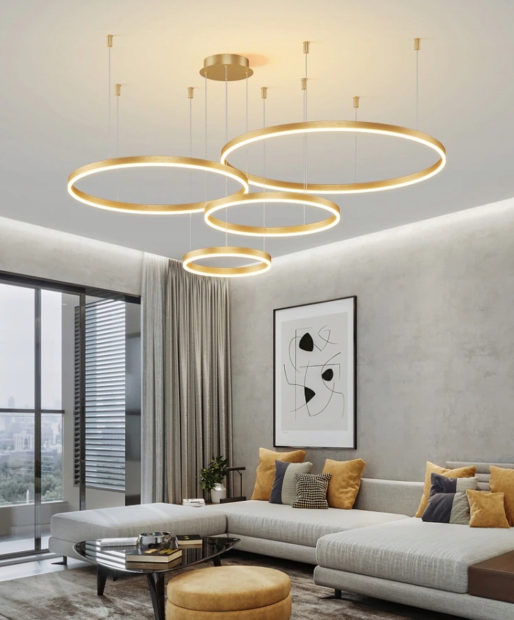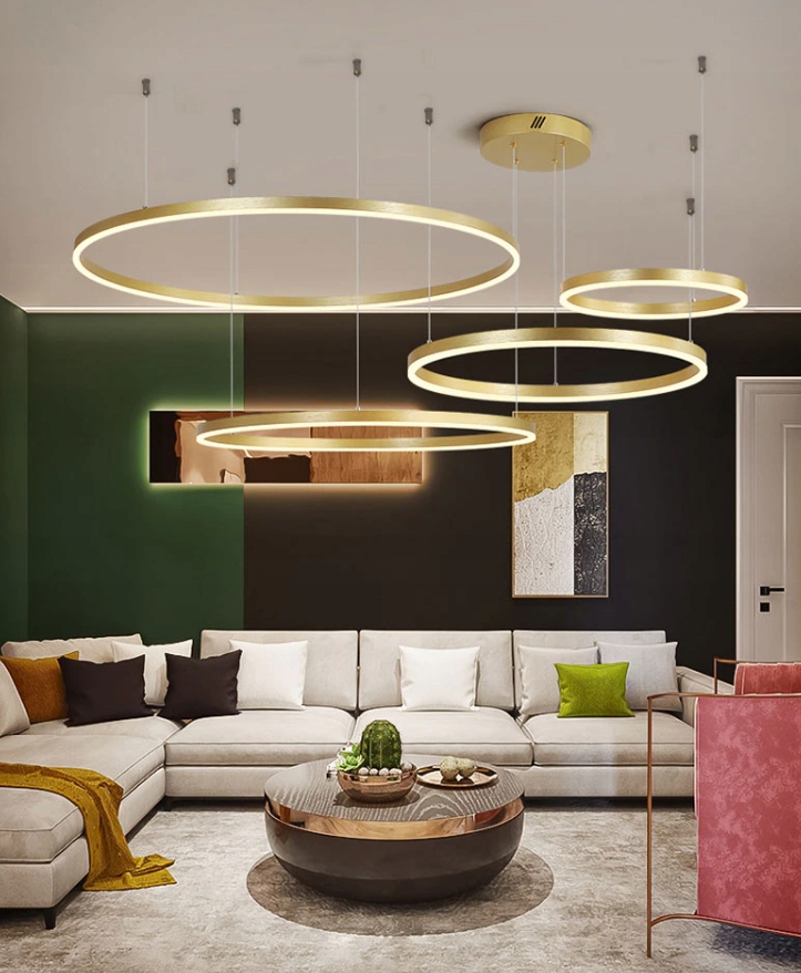 LED RING LAMP ЗОЛОТИЙ ПІДВІСНИЙ СВІТИЛЬНИК 80/60/60/40СМ