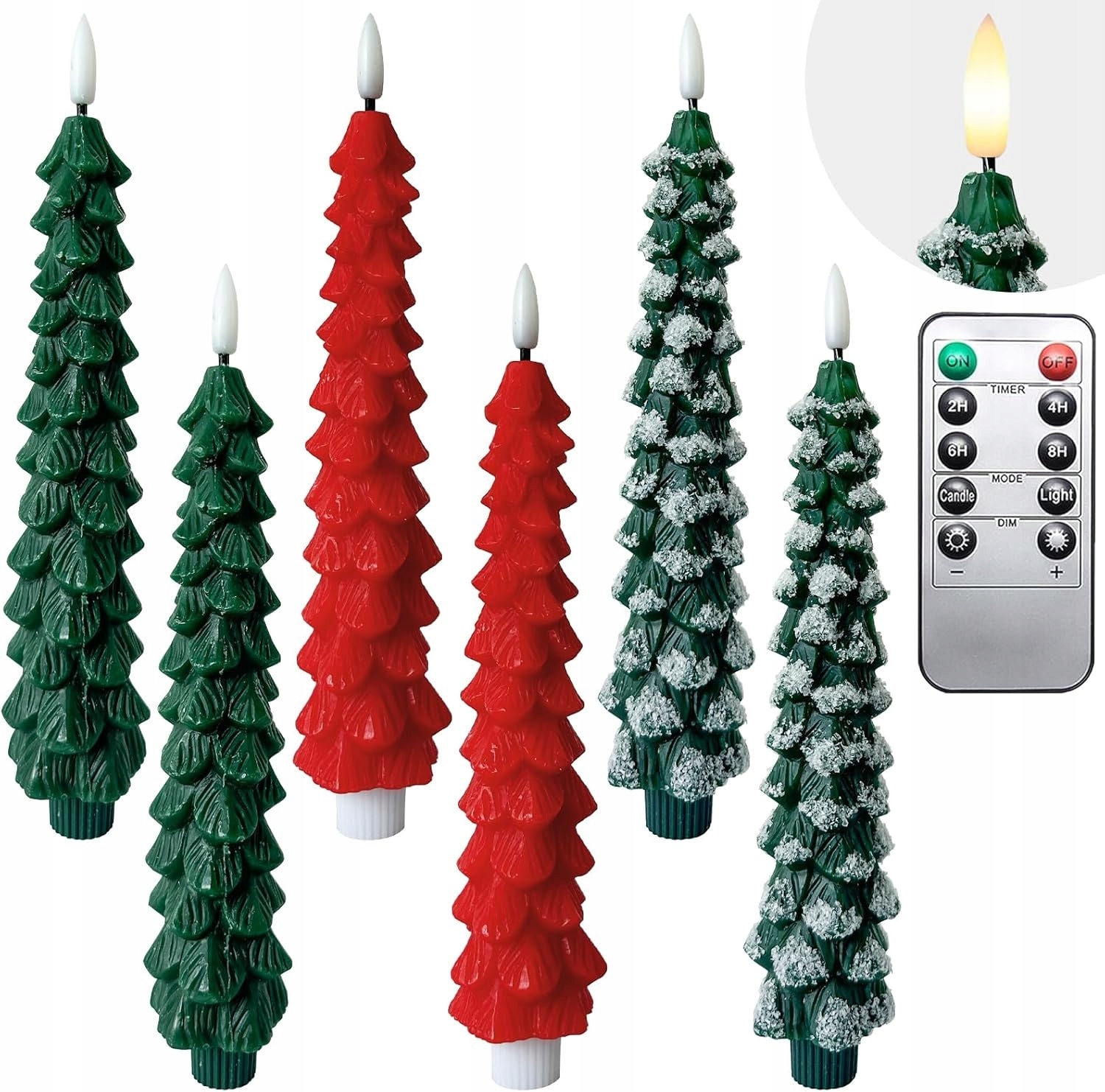 LED РІЗДВЯНІ СВІЧКИ Ялинка x6 Пульт з таймером Безполум'яний воск
