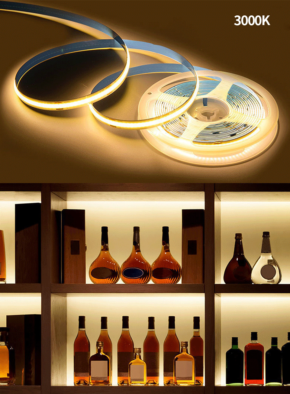 Світлодіодна стрічка COB — це спеціальна світлодіодна стрічка, яка забезпечує неймовірно плавне світло без окремих точок світла. Використовуючи світлодіодну стрічку COB, вам не обов’язково використовувати профіль з опаловим абажуром для отримання рівномірної лінії світла, без окремих світлодіодних точок. Світлодіодна стрічка COB характеризується гнучкістю та універсальністю використання. Ми зможемо використовувати його для освітлення будь-яких типів інтер’єрів, а високий індекс передачі кольору CRI>85 Ra в поєднанні з надзвичайною ефективністю гарантує високоякісне освітлення з природним характером. Використовуючи світлодіодні стрічки на діодній технології COB, завдяки високій щільності чіпів на метро ми відчуємо ефект повної (рівномірної) світлової лінії. Помітні «точки», тобто світлодіоди SMD у смузі, які турбують багатьох власників світлодіодів, більше не будуть проблемою.