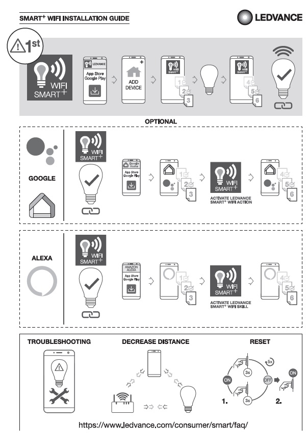 - Керування через додаток LEDVANCE SMART+ WiFi (принаймні з Android 4.4 або iOS 9.0)