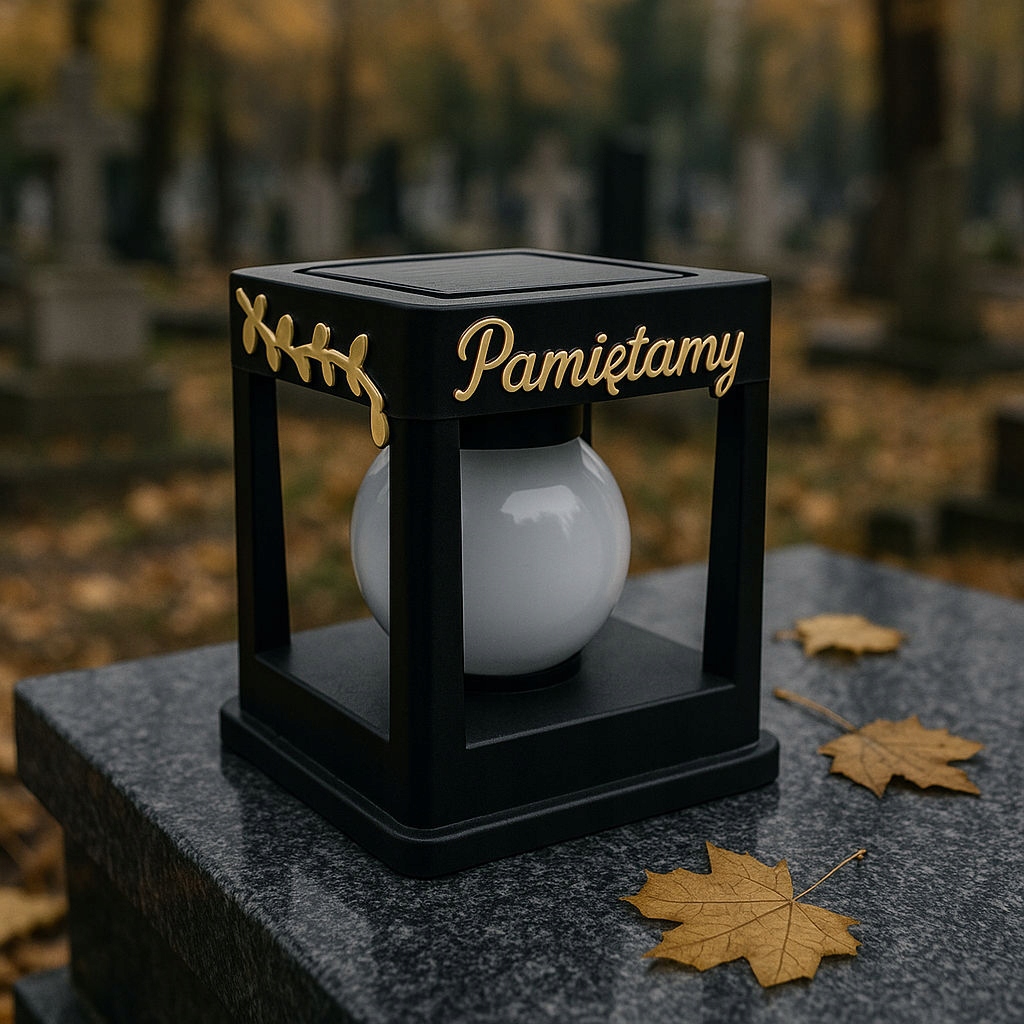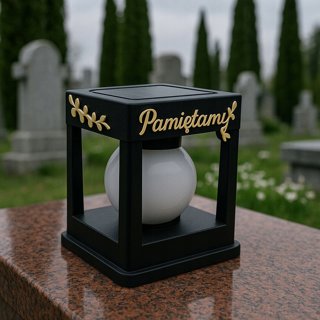 Відкрийте для себе елегантний, екологічний спосіб вшанувати своїх близьких завдяки світлодіодному сонячному ліхтарю «Ми пам'ятаємо». У мінімалістичному чорному корпусі з квадратною основою розміщена матова світла куля, а передня частина прикрашена золотим написом «Ми пам’ятаємо» та ніжним мотивом гілочок — тонке посилання на традиції та вічний мир. Вбудована сонячна панель заряджає батарею протягом дня, а сутінковий датчик автоматично вмикає лампу в сутінках - цілий рік не вимагає обслуговування.